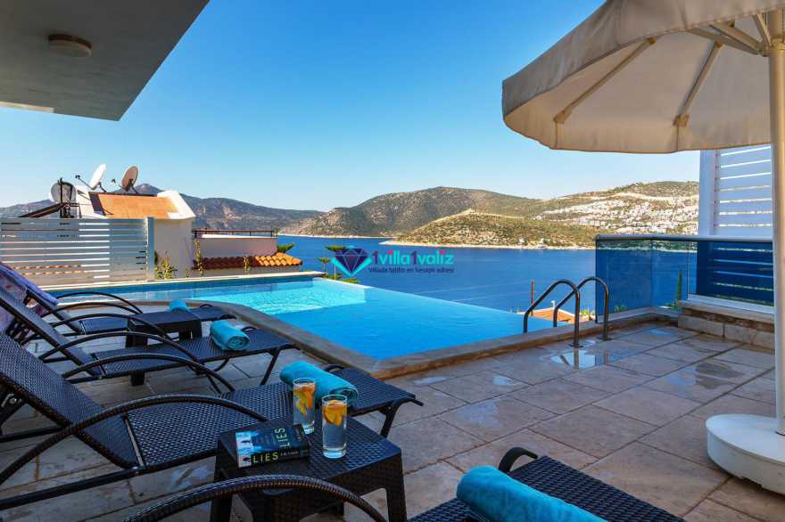 Villa Everes Kalkan'a 2 km uzaklıkta olan Kışla mevkiinde konumlanmış olan villamız 4 odalı 8 kişilik kapasiteye sahiptir. Villa Everes'in her odasında ebeveyn banyosu, deniz, adalar ve şehir manzarası vardır. Kalabalık ailelerimizin sıklıkla tercih ettiği villamız tam donanımlı geniş ve lükstür.