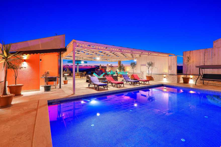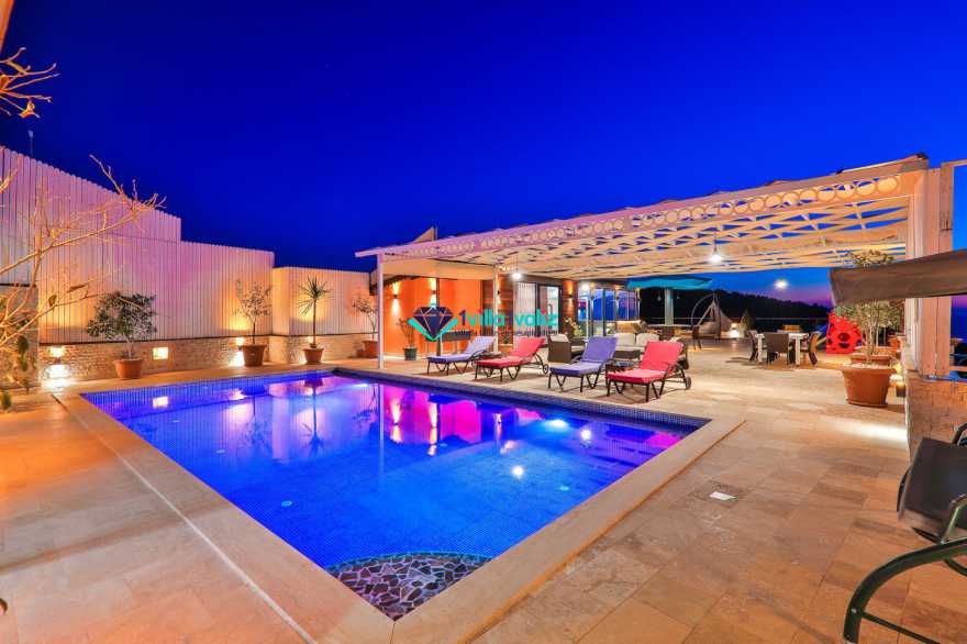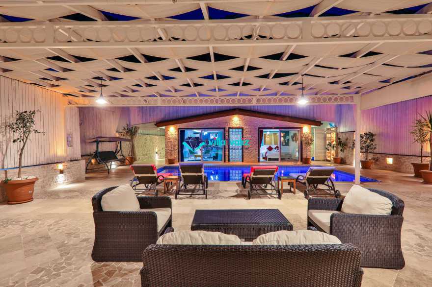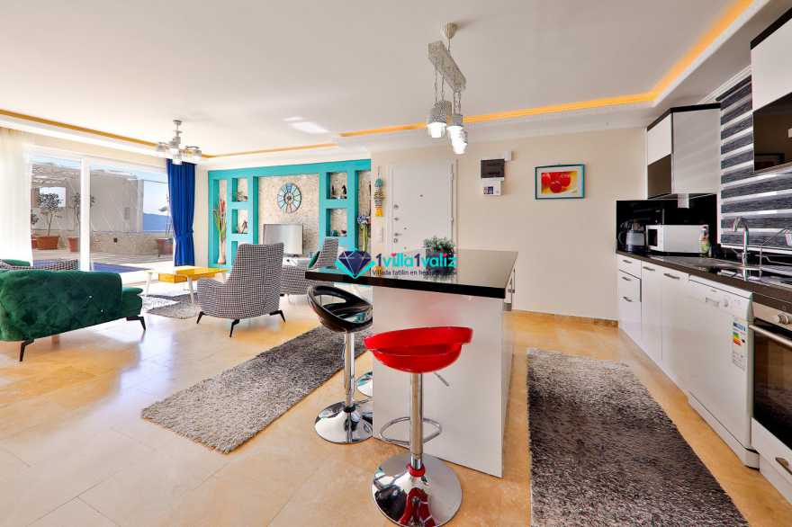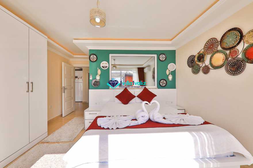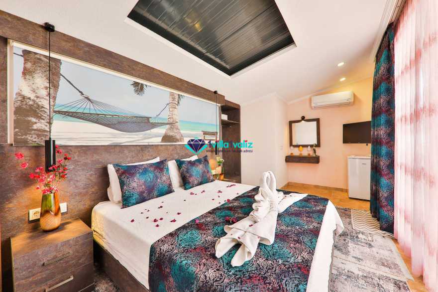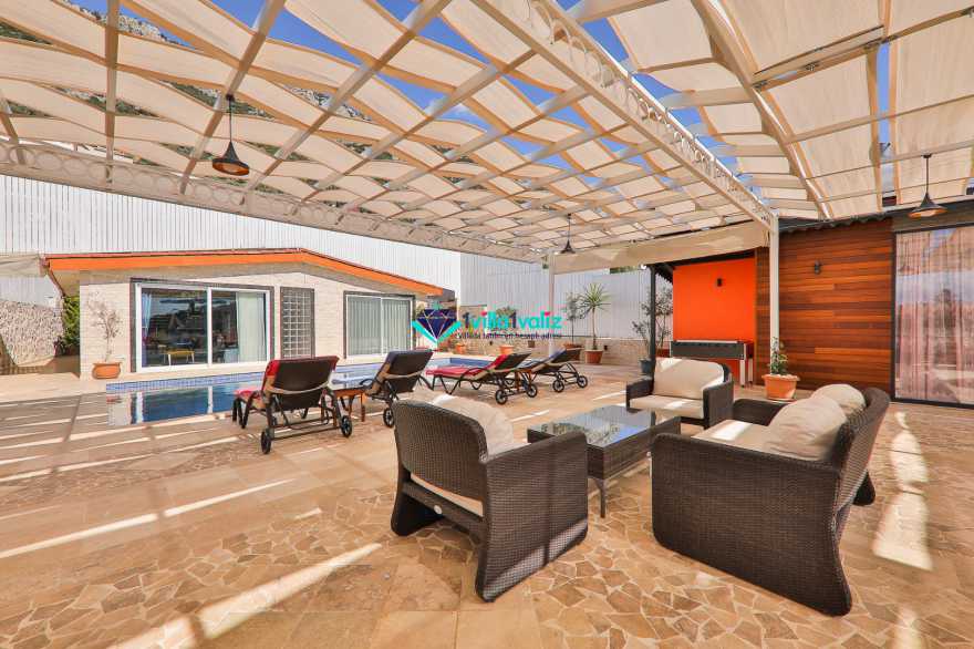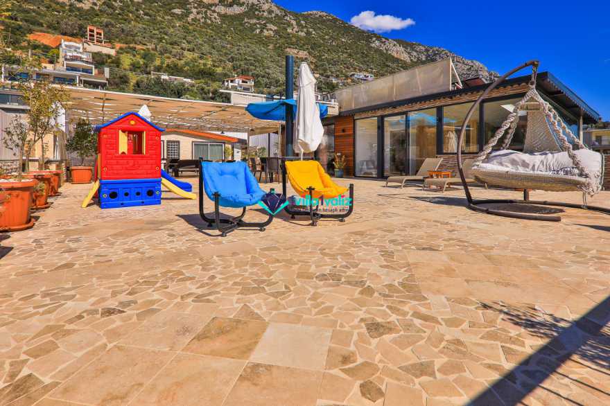 Villa Felix kalkan, Kalkan Kördere Mevkii´nde bulunan, oldukça güzel bir manzaraya sahip, 3 yatak odasından oluşan, çekirdek ailelere, balayı çiftlerine, dışarıdan havuzu görünmediğinden dolayı da muhafazakar ailelere uygun bir villadır. Kalkan şehir merkezine yaklaşık 4 km lik mesafededir. İki katlı yüksek bir binanın üzerine inşa edilmiş olan Villa Felix, yüksekte olduğu için gayet ferah ve havadardır. Villanın havuz terasında, şık bir taş yapım barbekü, şezlonglar, güneş şemsiyeleri, bahçe oturma grubu vs. bulunur. Villamızın terası oldukça geniştir kapalı ısıtmalı havuz ve sauna bulunmaktadır. Havuzda yüzerken ve güneşlenirken dışarıdan sizi hiç kimse görmez. Villanın arka bahçesinde salıncak ve küçük bir bahçe bulunur. 3 yatak odası da suit olup klimalıdır. Salon, Amerikan tarzda, açık mutfaklıdır. Villanın alt katında tenis masası bulunur. Aracınızı, villa binasının garajına park ettikten sonra, 35 basamaklı merdivenden villamıza ulaşırsınız