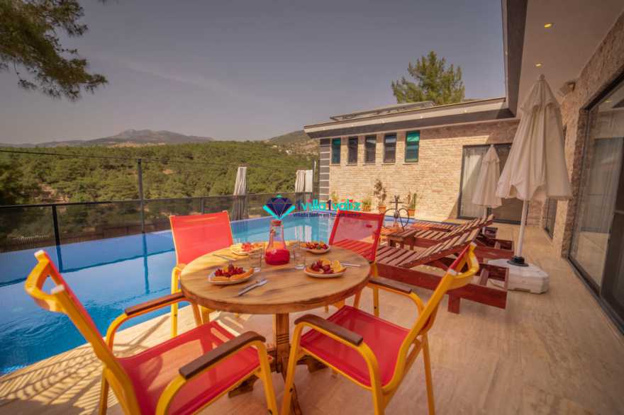 Not : Villamız geliş yolunun son 150 mt. si beton yoldur. Yolun son bölümü dik yokuştur ve aracınızı park ettikten sonra villaya ulaşmak için 15-20 adet merdiven bulunmaktadır.
