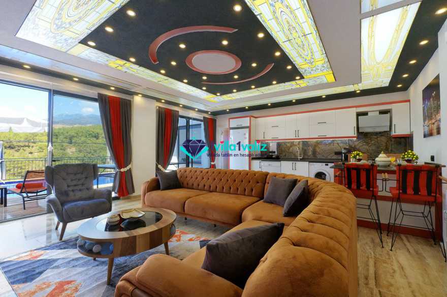 Not : Villamız geliş yolunun son 150 mt. si beton yoldur. Yolun son bölümü dik yokuştur ve aracınızı park ettikten sonra villaya ulaşmak için 15-20 adet merdiven bulunmaktadır.