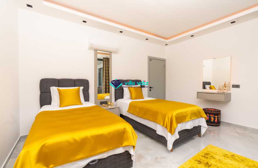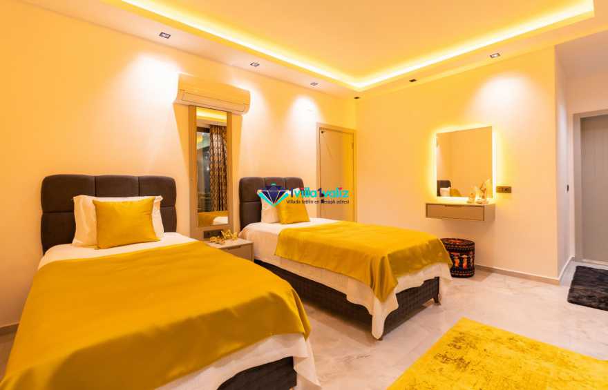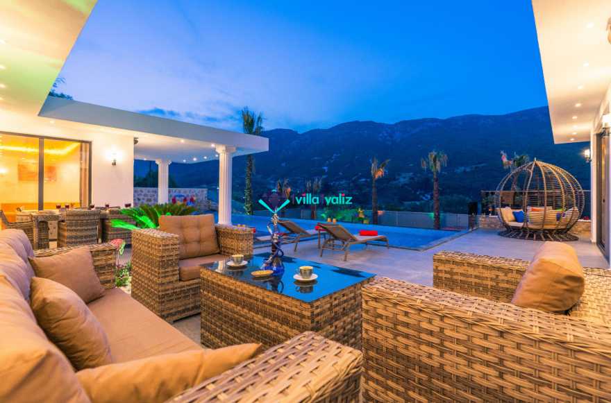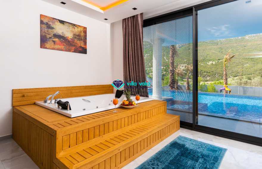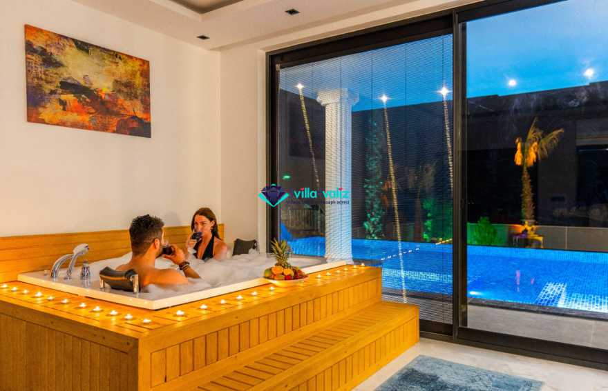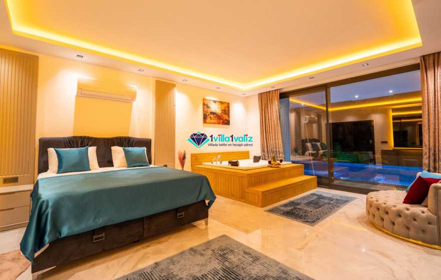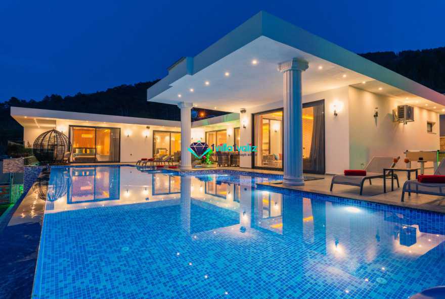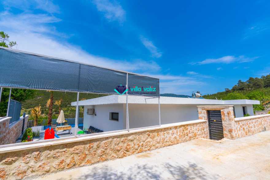 Villa Ferzan Kalkan Hacıoğlan mevkiinde konumlanmış , huzur verici bir tatil için sizleri bekliyor .Villamız 3 yatak odasıyla 6 kişi kapasitelidir. Tatiliniz boyunca ihtiyacınız olan herşeyin düşünüldüğü villamız da kendinize ait yaşam alanınızı yine siz kullanarak , özel yüzme havuzunda her bir anın keyfini ve konforunu yaşayabilirsiniz. Villamızda jakuzi, küvet, çoçuklar için oyun alanı(sandalye,masa, kitap,oyuncaklar), sinema odası, masa tenisi, langırt, playstation, küçük çoçuk parkı ( kaydırak ve salıncak), büyük çocuk parkı( kaydırak, salıncak, top havuzu, trambolin, tahterevalli, futbol kalesi, basketbol potası), havuz başında barbekü, nargile, oturma grubu, yemek masası, apple yatak bulunmaktadır. Villamızın büyük havuzunda çoçuk havuzu, jakuzisi ve şelalesi bulunmaktadır. Villamız 400 m² çim alana sahiptir. Kalkan şehir merkezine 20 dakikalık yol mesafesindedir. Villamızın havuzu korunaklı olup muhteşem bir doğa manzarasına sahiptir. Villamızın alt kısmında ise spa merkezi bulunmaktadır.
