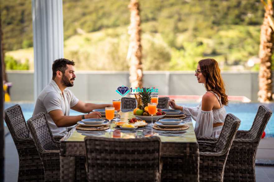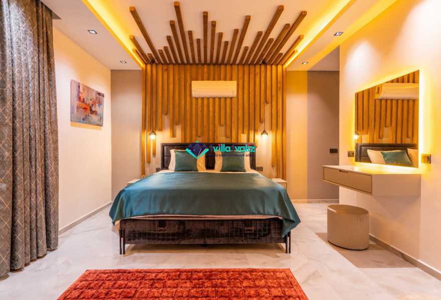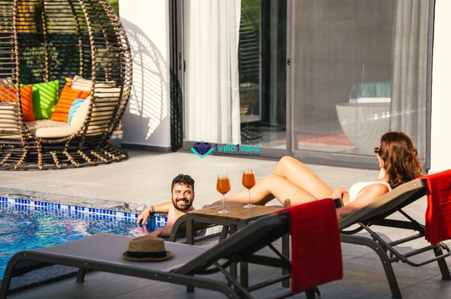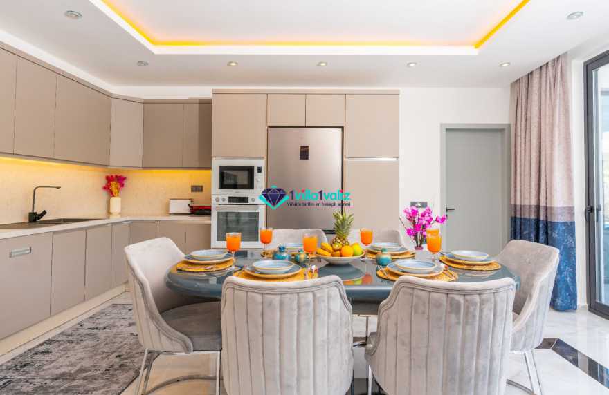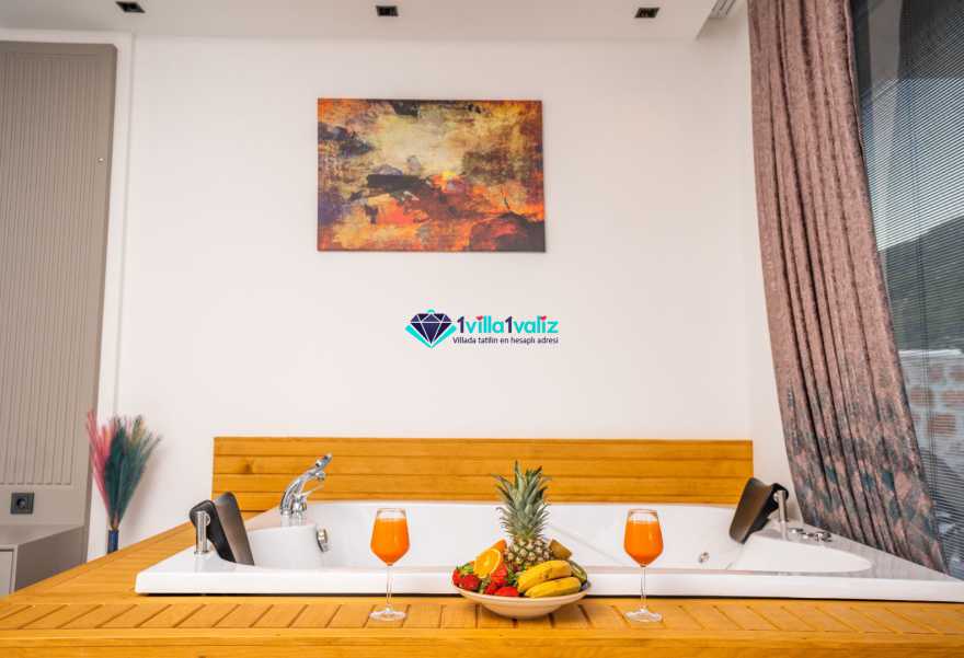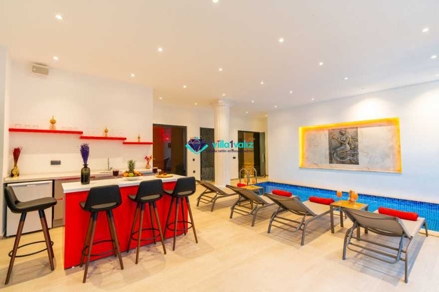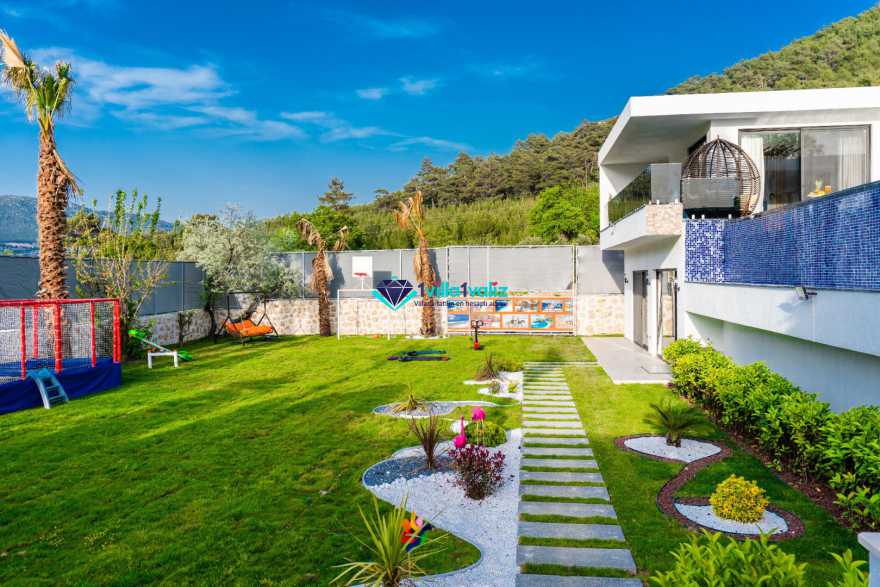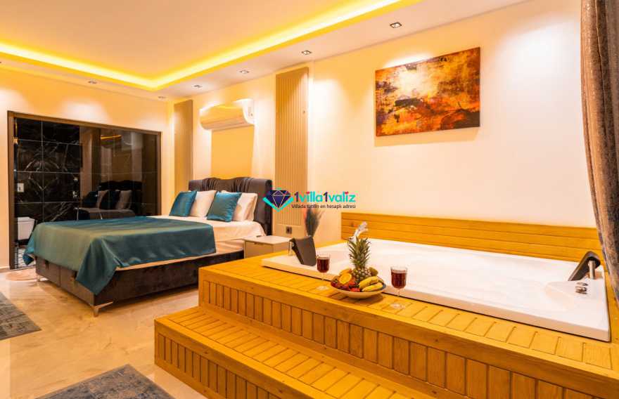 Villa Ferzan Kalkan Hacıoğlan mevkiinde konumlanmış , huzur verici bir tatil için sizleri bekliyor .Villamız 3 yatak odasıyla 6 kişi kapasitelidir. Tatiliniz boyunca ihtiyacınız olan herşeyin düşünüldüğü villamız da kendinize ait yaşam alanınızı yine siz kullanarak , özel yüzme havuzunda her bir anın keyfini ve konforunu yaşayabilirsiniz. Villamızda jakuzi, küvet, çoçuklar için oyun alanı(sandalye,masa, kitap,oyuncaklar), sinema odası, masa tenisi, langırt, playstation, küçük çoçuk parkı ( kaydırak ve salıncak), büyük çocuk parkı( kaydırak, salıncak, top havuzu, trambolin, tahterevalli, futbol kalesi, basketbol potası), havuz başında barbekü, nargile, oturma grubu, yemek masası, apple yatak bulunmaktadır. Villamızın büyük havuzunda çoçuk havuzu, jakuzisi ve şelalesi bulunmaktadır. Villamız 400 m² çim alana sahiptir. Kalkan şehir merkezine 20 dakikalık yol mesafesindedir. Villamızın havuzu korunaklı olup muhteşem bir doğa manzarasına sahiptir. Villamızın alt kısmında ise spa merkezi bulunmaktadır.