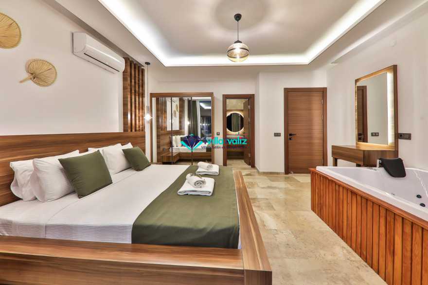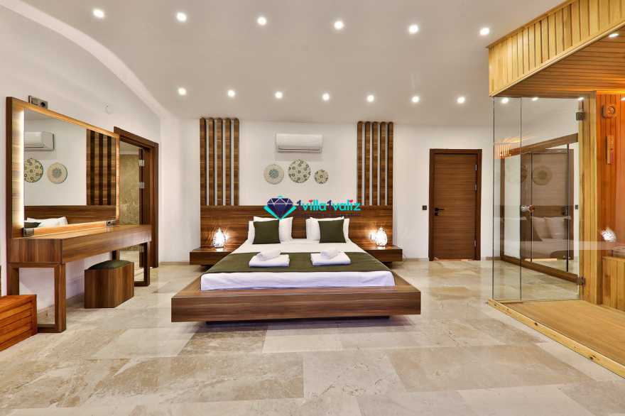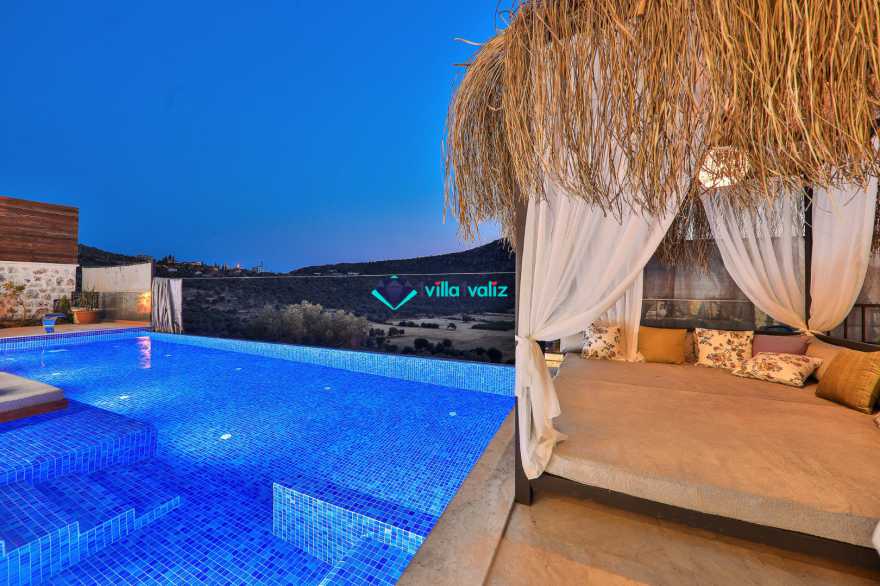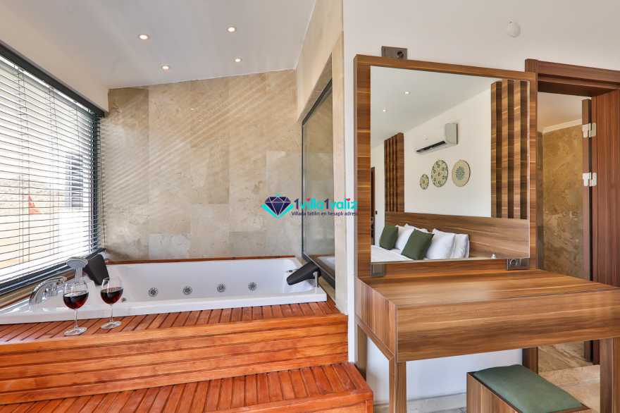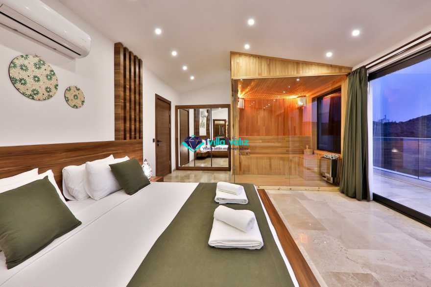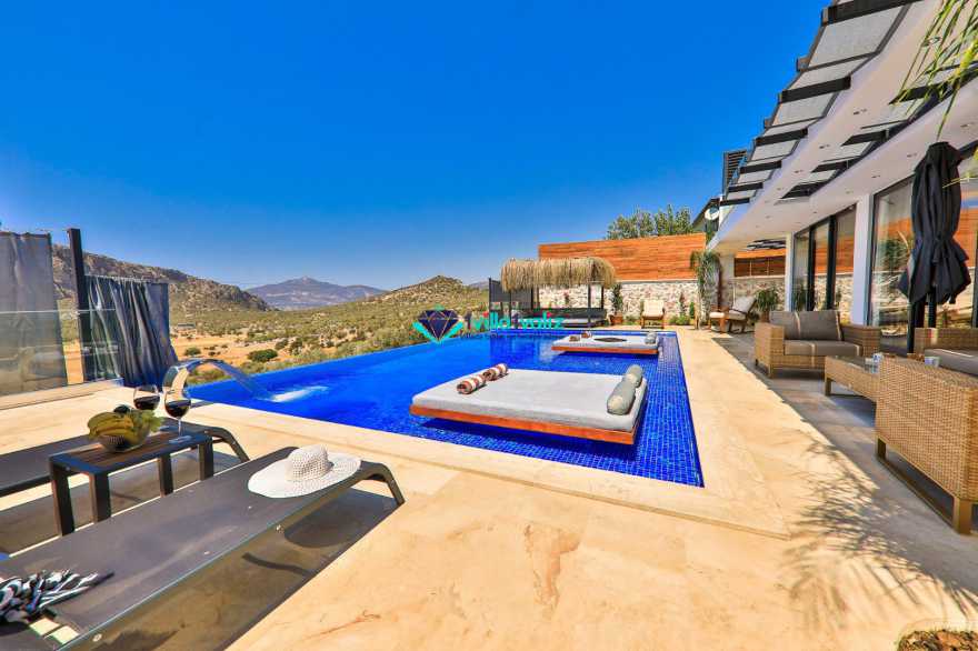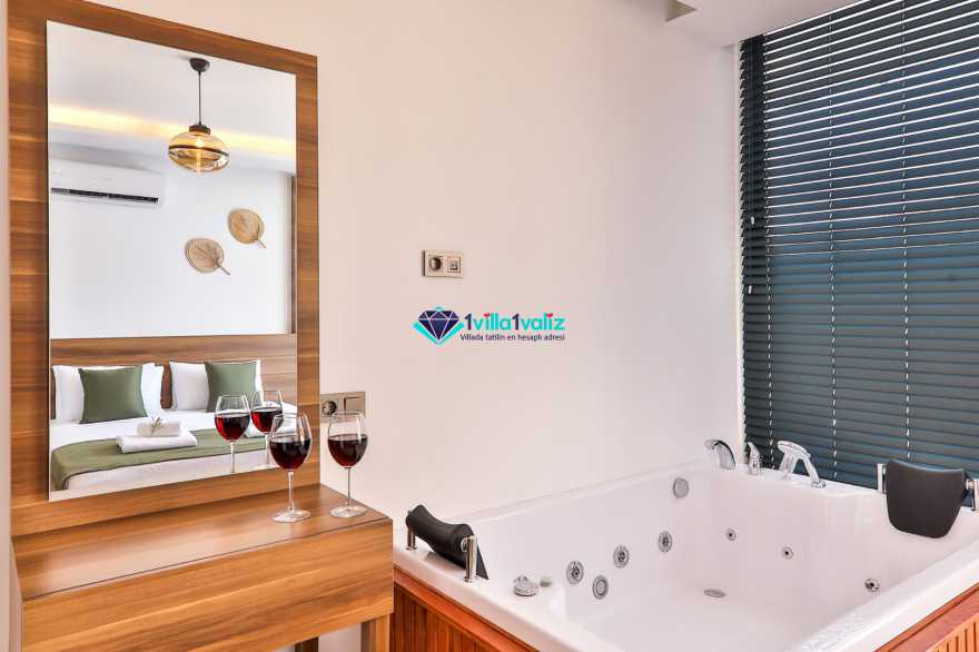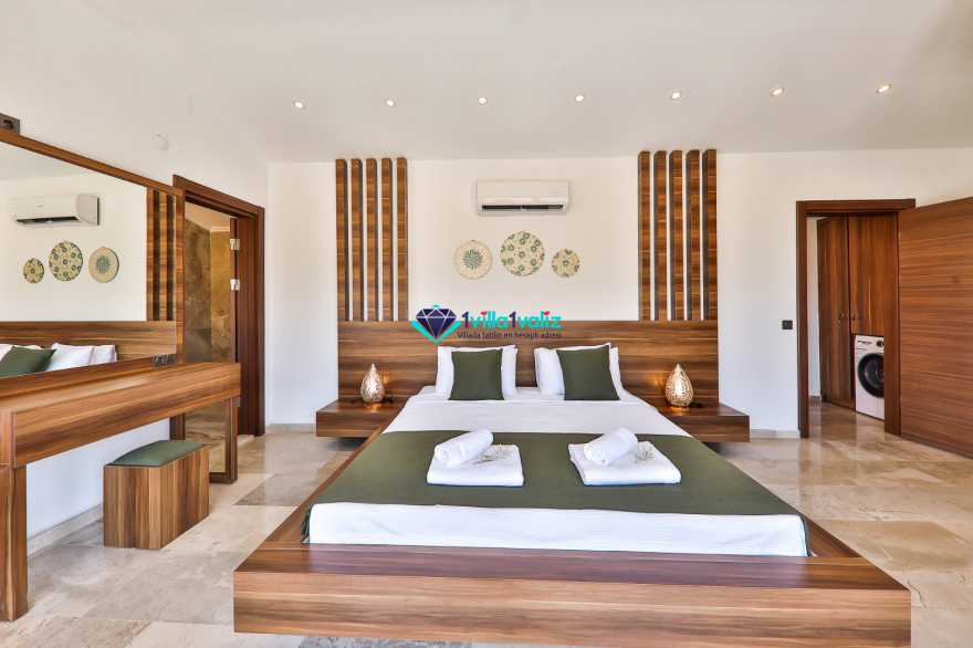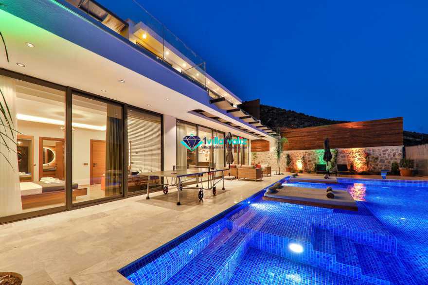 Villa Glorius Kalkan'ın Ulugöl bölgesinde bulunmaktadır. 2 yatak odalı ve 4 kişi konaklama imkanı sunan tatil villası oldukça lüks ve modern tasarıma sahiptir. Zemin katında jakuzili, şık tasarıma sahip bir yatak odası ve Amerikan Mutfak salon şeklinde tasarlanmış oturma alanı, üst katında ise saunalı ve jakuzili diğer yatak odası yer almaktadır. Doğa içerisinde ve muhteşem doğa manzarasına sahip kiralık villanın havuz terası tamamen korunaklı olup muhafazakar aileler ve balayı çiftleri için ideal olmakla beraber geniş bahçe ve havuz kısmında oturma alanı, barbekü, masa tenisi, keyif köşesi, şezlonglar ve güneş şemsiyesi yer almaktadır. Aracınızla Kalkan merkeze 5 dakikalık sürüş mesafesinde bulunan muhafazakar lüks villa en yakın plaja ise 2,3 km uzaklıktadır.