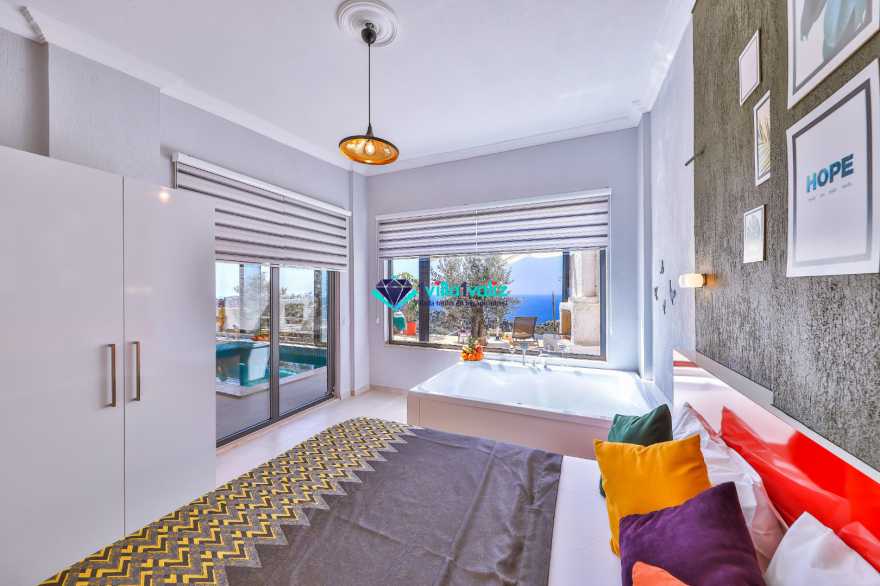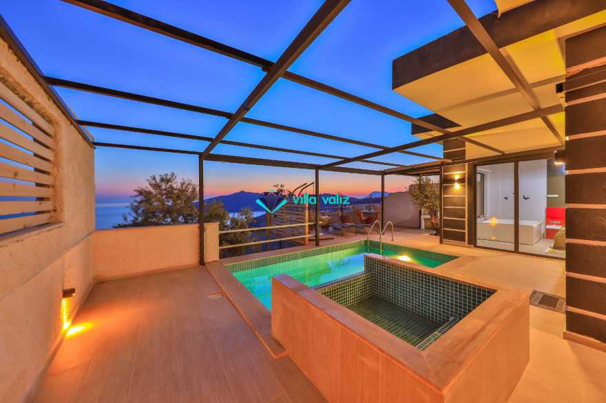 Deniz manzarasına sahip olan villada, geniş bir yüzme havuzu ve güneşlenme terası var. Bu iki bölüm de manzarayı görecek şekilde inşa edilmiş. Konukların her an romantizm dolu, doğal güzelliklere şahit olabilmesi için özel olarak hazırlanan havuz, aynı zamanda korunaklı olarak tasarlanmış. Gizlilik konusunda hassasiyetlere sahipseniz, villada konaklarken tam istediğiniz gibi günler geçireceğinize emin olabilirsiniz.