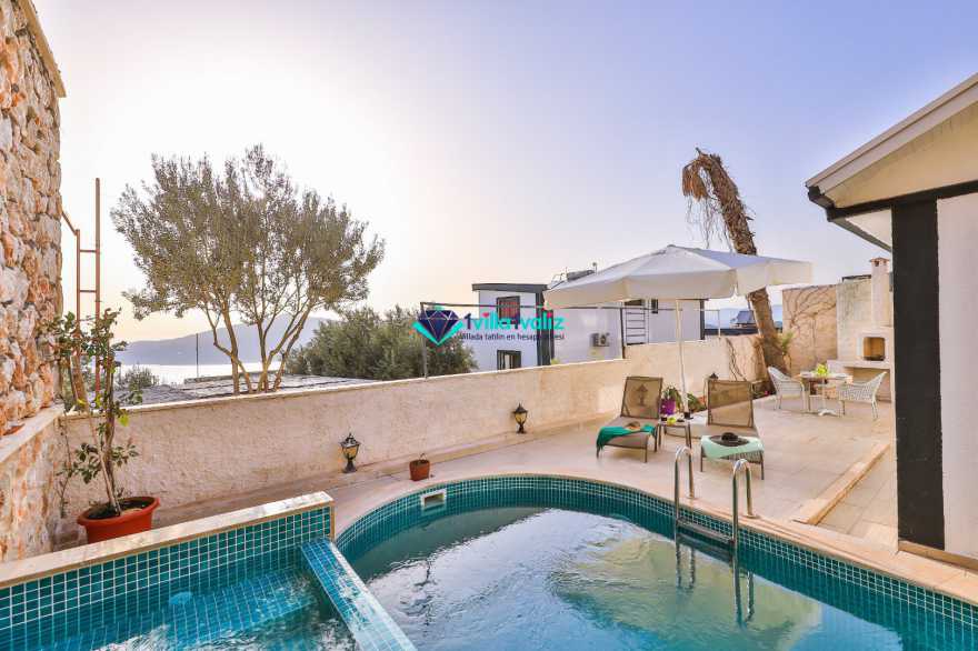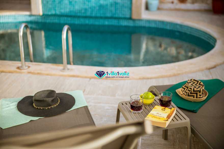 Villa Gusto 4’de, manzaraya karşı inşa edilen özel bir yüzme havuzu sizi bekliyor. Masmavi denize şahit olacağınız bu yüzme havuzu, gizliliğinizi koruyacak biçimde, muhafazakar tatilciler için korunaklı olarak inşa edilmiş. Özellikle balayı çiftleri tarafından tercih edilen bu özellik, konukların dışarıdan görünmeden, doya doya havuz ve güneş keyfi yaşayabilmelerini mümkün kılıyor.