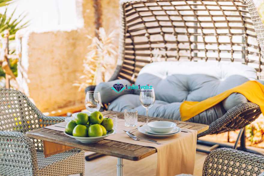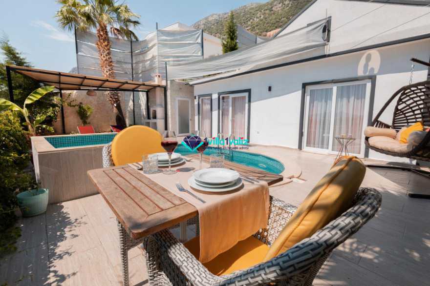 Villanın korunaklı olarak inşa edilmiş bahçesinde bahçe mobilyaları yer almakta. Kalkan’ın yıldızlı gecelerini, havuzunuzun başında izlerken benzersiz anlar yaşayacağınıza emin olabilirsiniz.