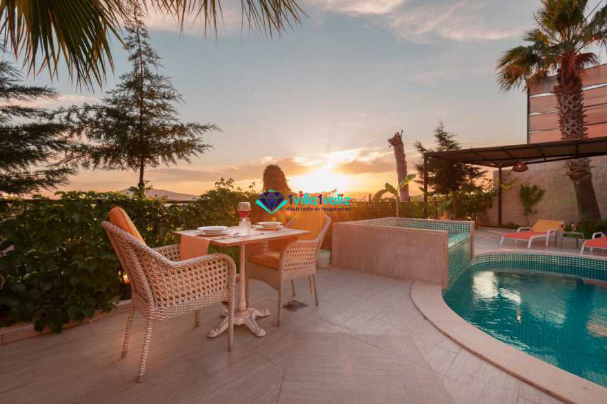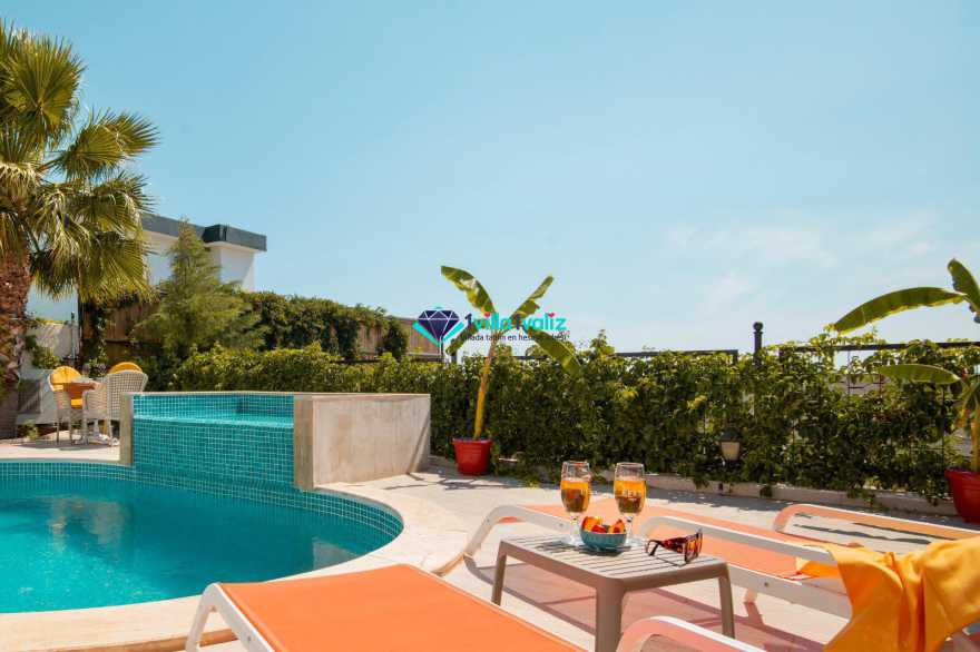 Villanızda size özel bir yüzme havuzu bulunuyor. Bu yüzme havuzu tam 5 metre boyunda ve oldukça geniş. Özel bir tatil yaşayabilmeniz için, dışarıdan görünmeyecek şekilde tasarlanan havuz, muhafazakar tatilcilerin ihtiyaçlarını tam manasıyla karşılamakta. Villada bahçe bölümü de tamamen korunaklı inşa edilmiş.