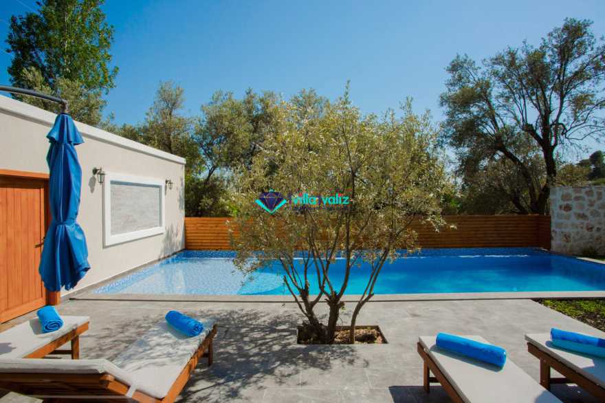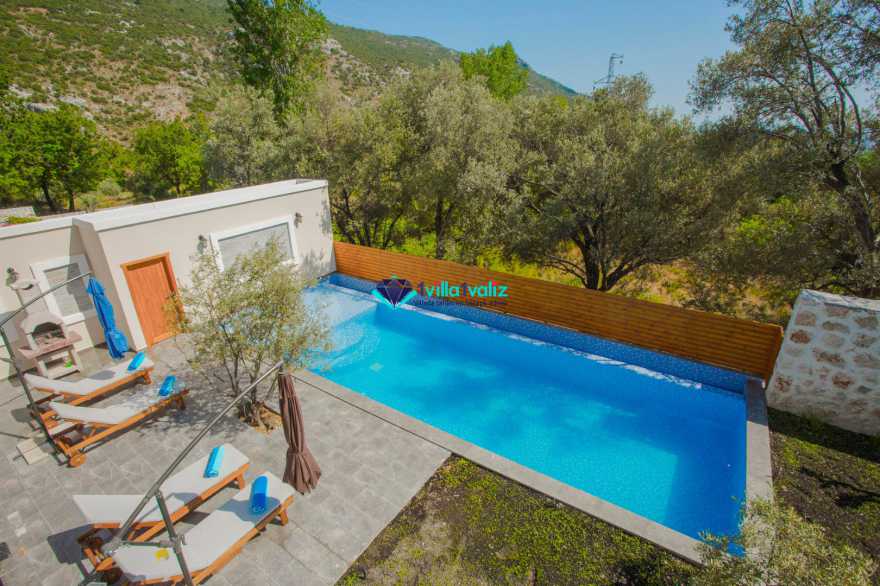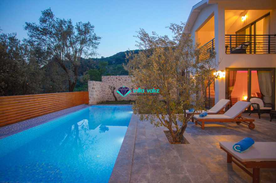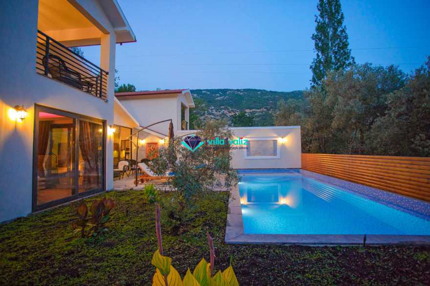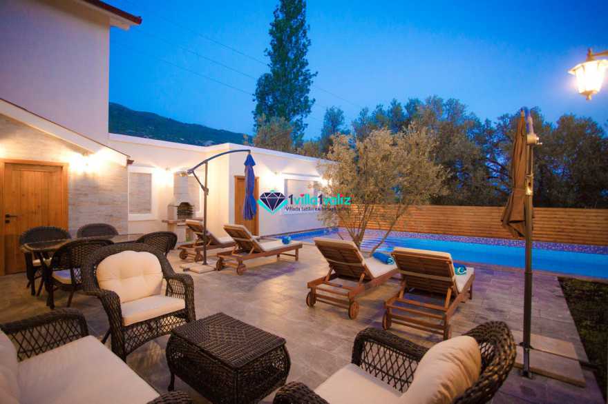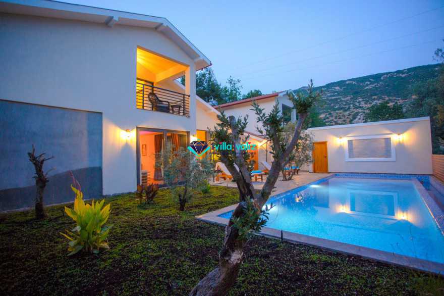 Kalkan İslamlar bölgesinde bulunmaktadır.2 Yatak odalı 4 Kişilik kapasiteye sahip olan villamız özenle dizayn edip çift kişilik suit yatak odasında jakuzi de bulunmaktadır. Genellikle balayı çiftlerimizin tercihi olmakta olup villamız muhafazakardır, dışarıdan hiç bir şekilde gözükmemektedir. Ayrıca bir o kadar da doğa manzaralı ve kuş seslerinin verdiği huzur ile beraber keyifli zamanlar geçirebilrsiniz. Ve de merkeze 15 dk uzaklıkta olup market ve restoranlara 2 km uzaklıkta size rahatlık sunmaktadır.