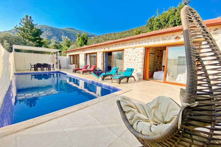 Antalya’nın gözde turistik yerlerinden olan Kaş’ın Üzümlü mahallesinde yer alan muhafazakar kiralık villamız sevdiklerinizle doyasıya eğlenceli vakit geçirebileceğiniz şekilde tasarlanmıştır. Mimarisi ile göz büyüleyen villamızda otantik esintiler bulunmaktadır. Muhafazakar villamız 2 yatak odalı 4 kişilik kapasiteye sahiptir, balayı çiftlerimizde tercih etmektedir. Doğayla iç içe konumlanan villamızda özel yüzme havuzu ve havuz terası perdeleme sistemi ile kapatılarak muhafazakar ailelerin tercihi olabilir. Doğanın eşsiz manzarasını, bahçemizde bulunan salıncak ile keyifli hale getirebilirsiniz.