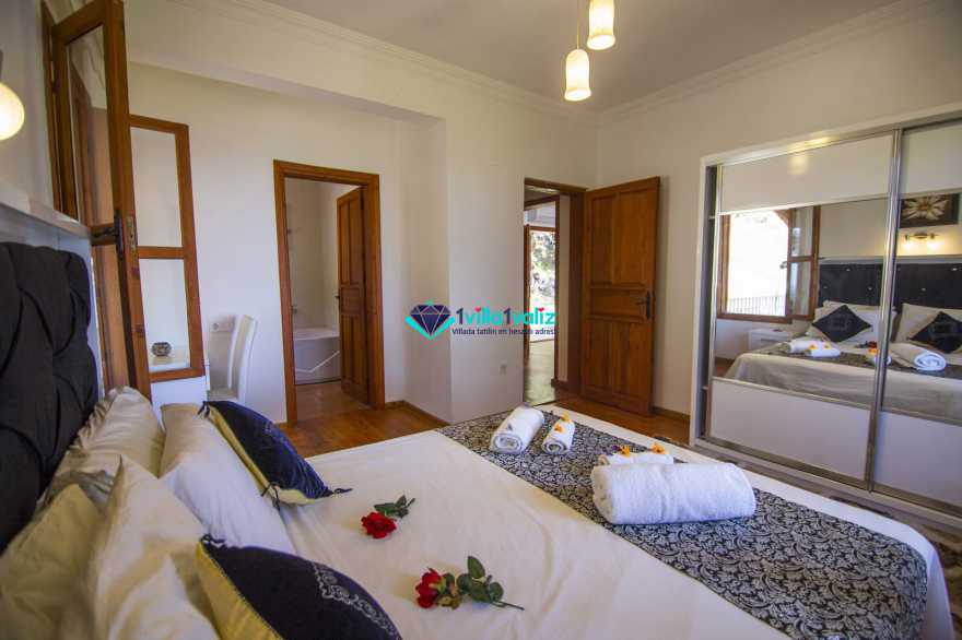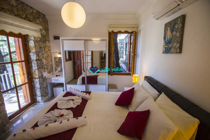 Villa Harzem, Kalkan İslamlar Köyü’nde geniş bir arazi üzerine konumlanmış çok özel bir tatil evidir. Korunaklı müstakil yüzme havuzuna sahip olan evimizin içerisinde her türlü detay düşünülmüştür. Sessiz sakin konuma sahip 4 yatak odalı olan villamızın 3 yatak odasında ebeveyn banyosu bulunmaktadır ayrıca salonda da bir banyo yer almaktadır. Villamız iki ayrı bölümden oluşmaktadır. Üst kısımda salon, mutfak ve iki adet odanın yer aldığı bir bölüm yer almaktadır. Alt kısımda ayrı girişli olan bölümde ise iki adet oda yer almaktadır. Havuz başında mükemmel manzara eşliğinde havuz keyfini yaşama şansınız bulunmaktadır. Bahçede bulunan oturma alanı, langırt ve masa tenisi eğlenceli bir tatil için sizleri bekliyor…