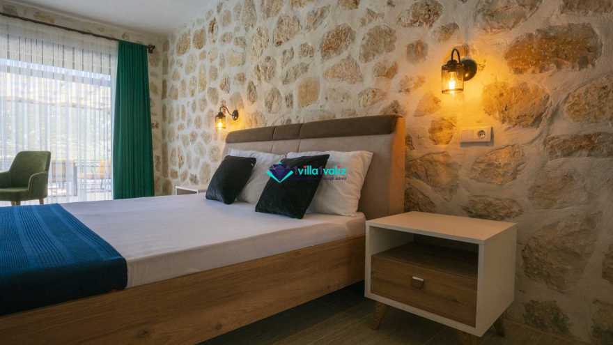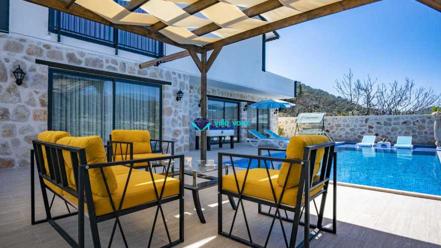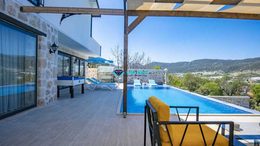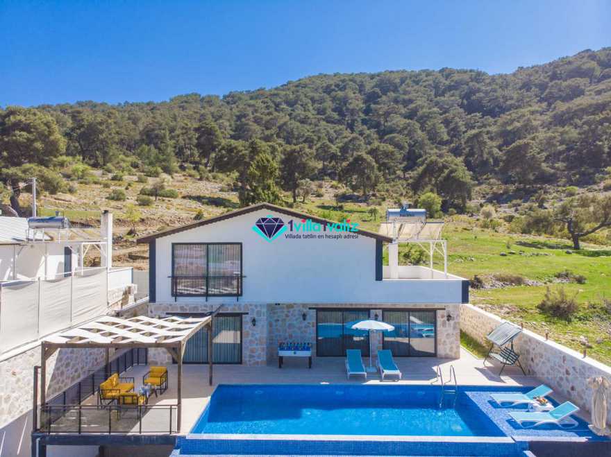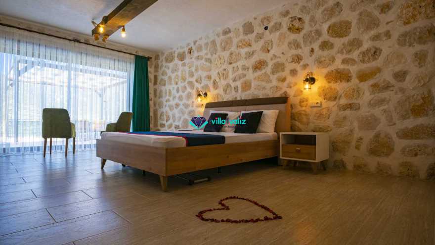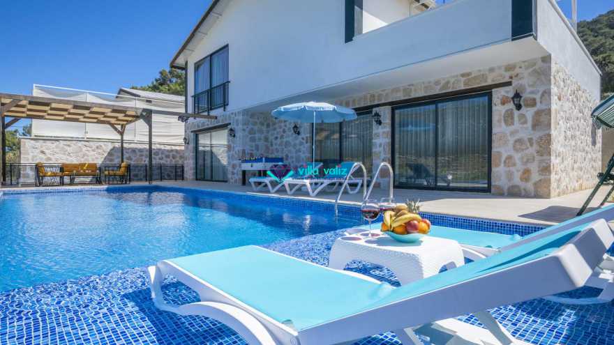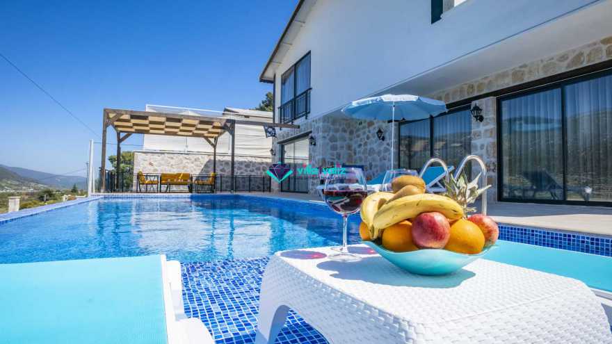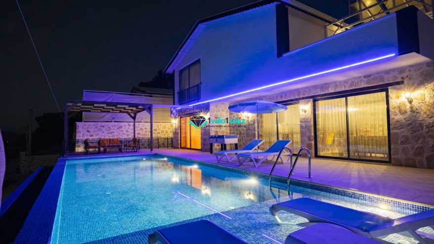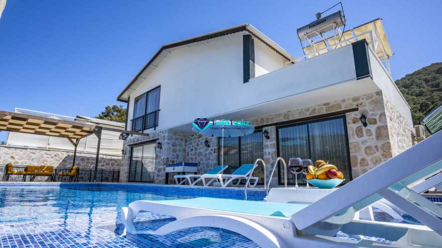 Kalkan Sarıbelende doğa içerisinde konumludur. 3 yatak odalı 6 kişi konaklama kapasitelidir. Taş mimarisi oldukça oldukça keyif verici villamızın havuz terası korunaklı olup dışarıdan gözükmemektedir. Özel havuzlu jakuzili kiralık tatil villamız muhafazakar aile ve balayı çiftlerimiz için oldukça idealdir.