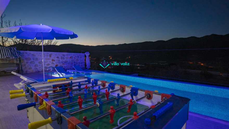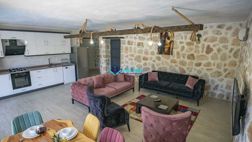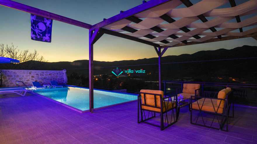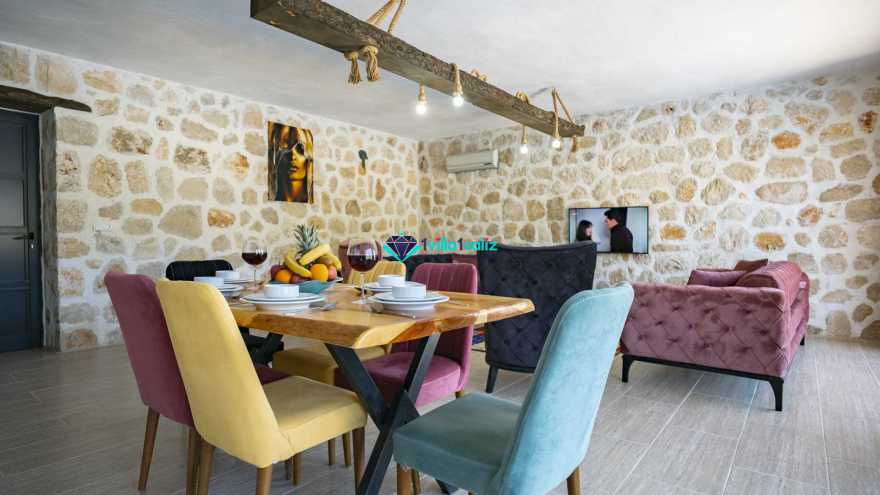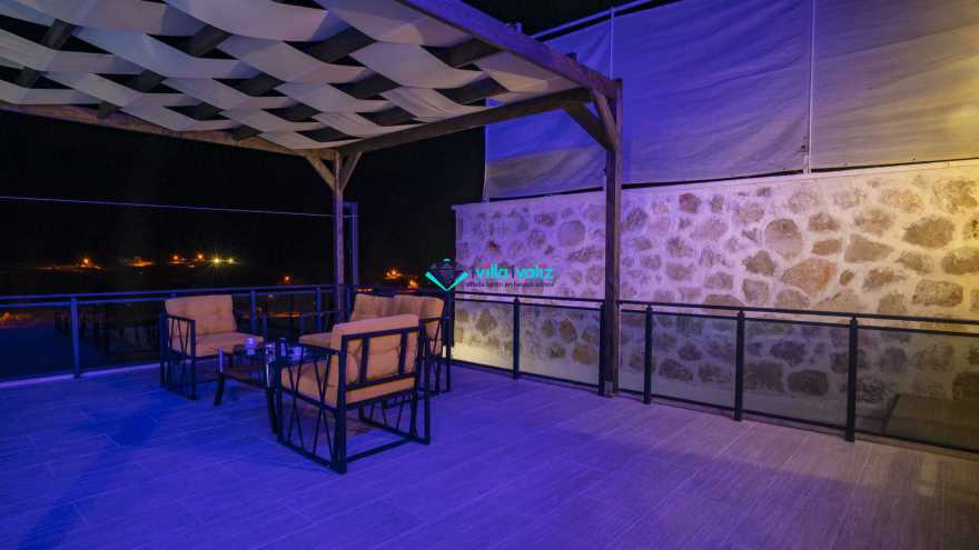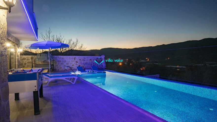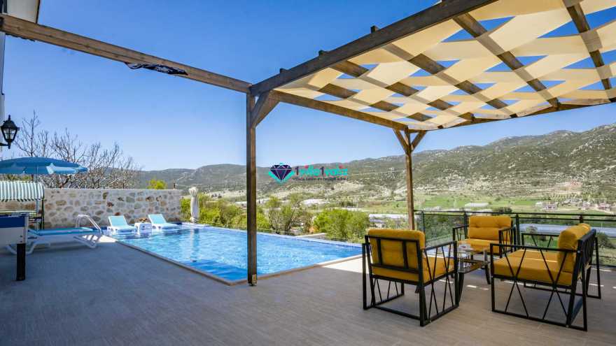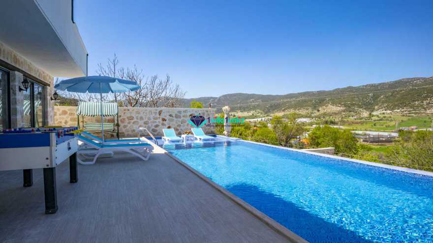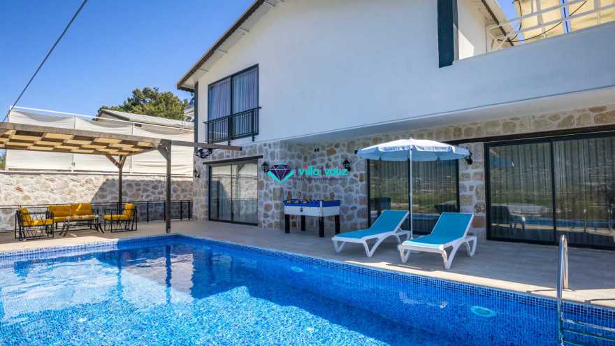 Kalkan Sarıbelende doğa içerisinde konumludur. 3 yatak odalı 6 kişi konaklama kapasitelidir. Taş mimarisi oldukça oldukça keyif verici villamızın havuz terası korunaklı olup dışarıdan gözükmemektedir. Özel havuzlu jakuzili kiralık tatil villamız muhafazakar aile ve balayı çiftlerimiz için oldukça idealdir.