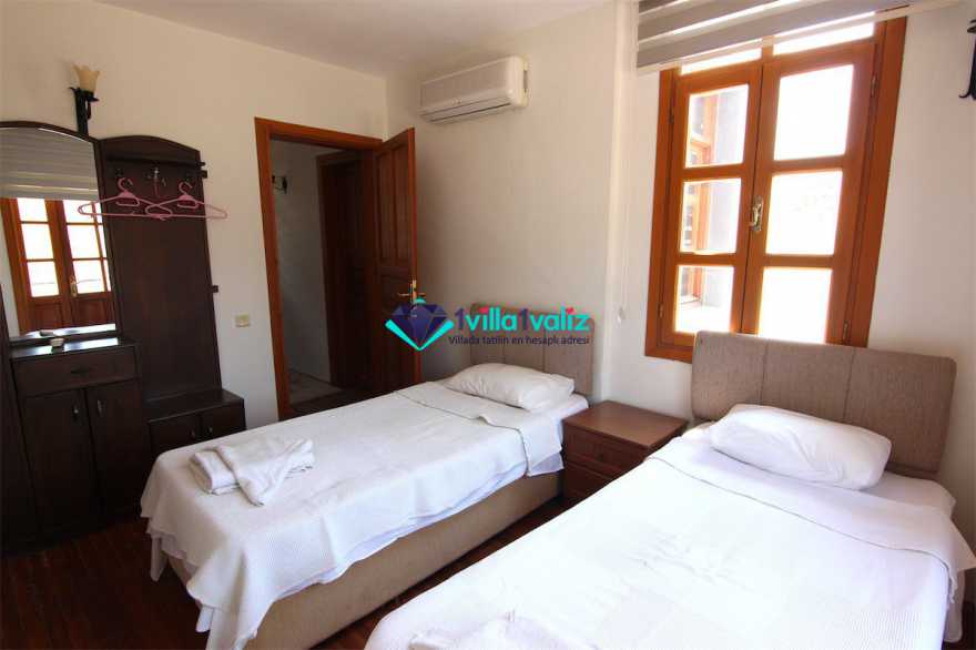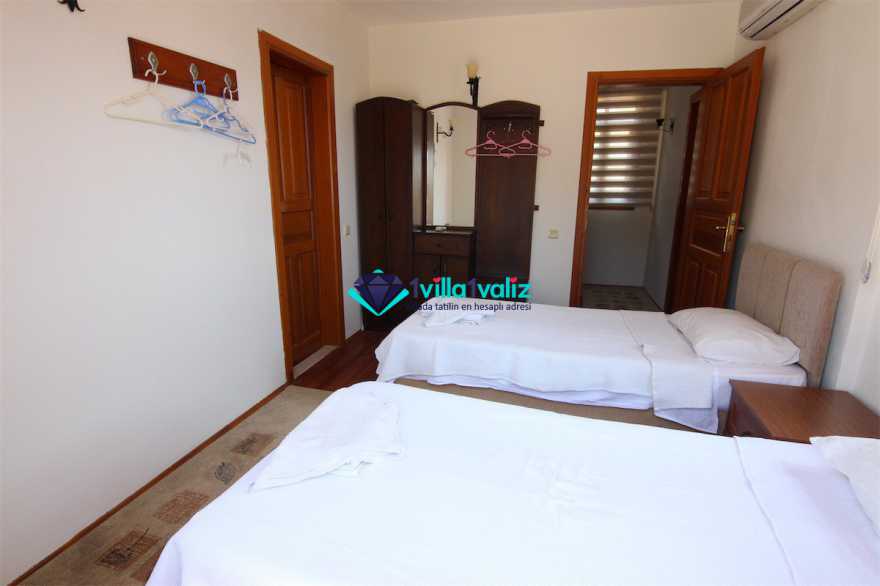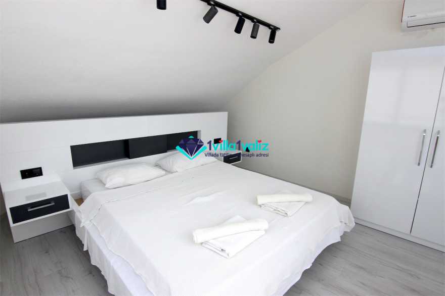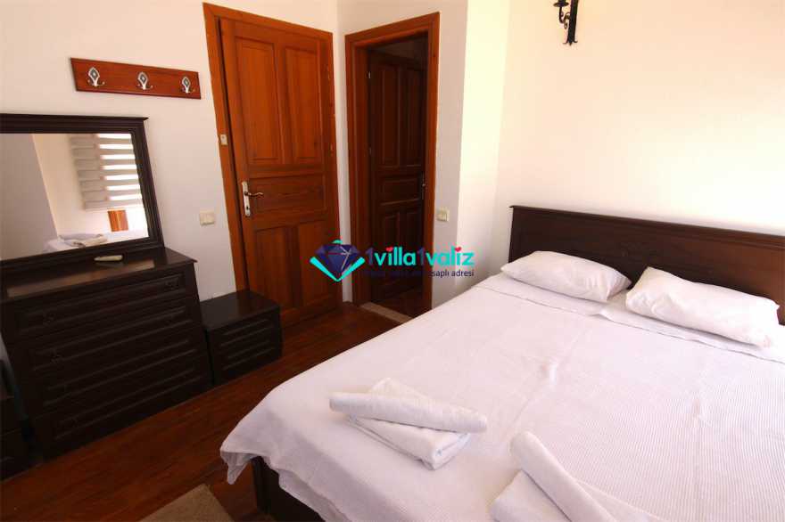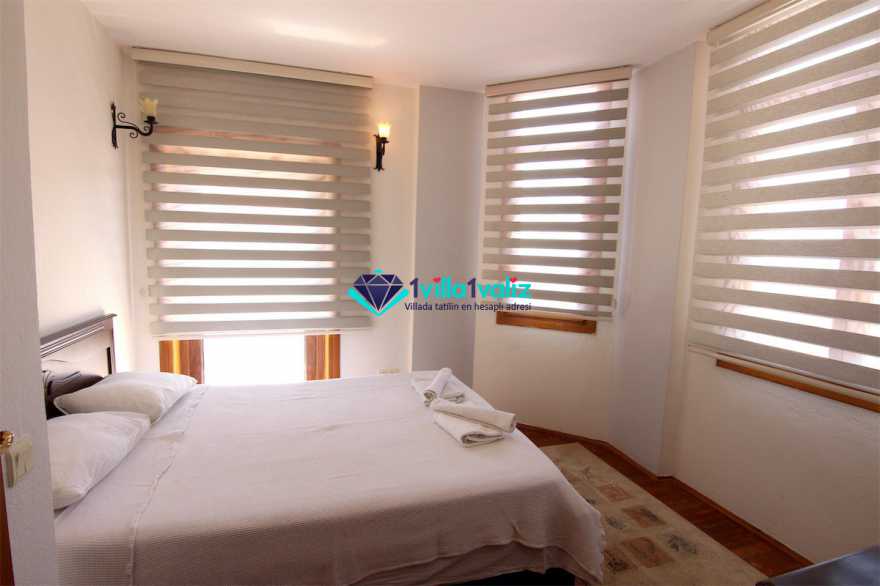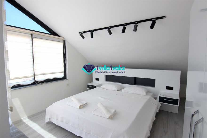 - Kiralık villamız çatı katında tek kişilik katlanabilir bir yatağa sahiptir. Ayrıca salonda yer alan L şeklindeki oturma gurubu çift kişilik yatak olabilmektedir. Böylece konaklama kapasitesi 7 kişiye kadar çıkartılabilmektedir.