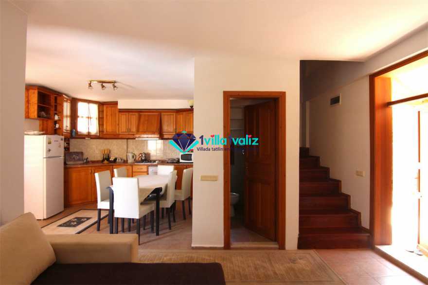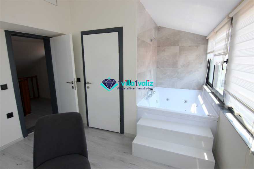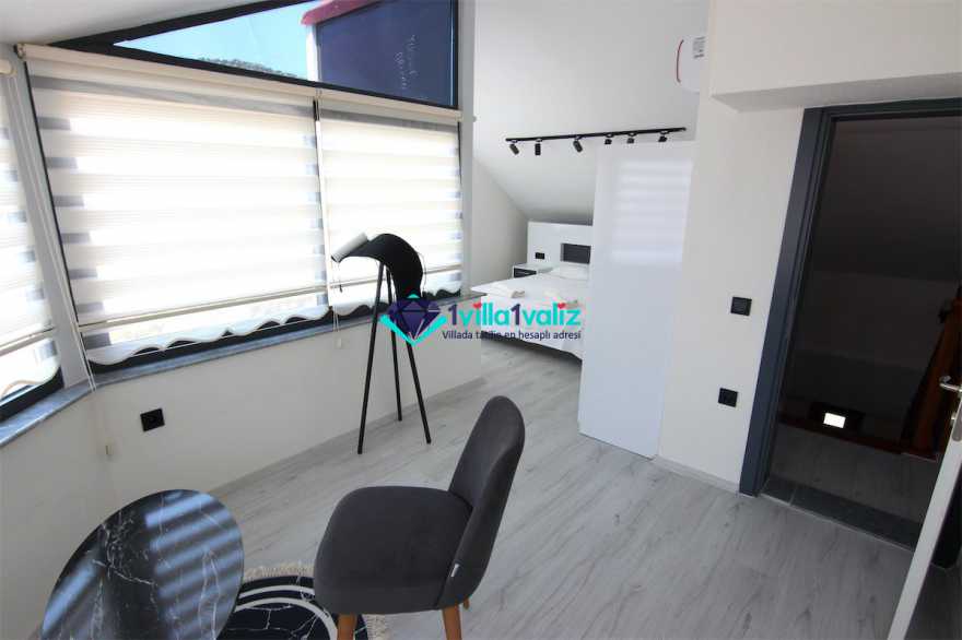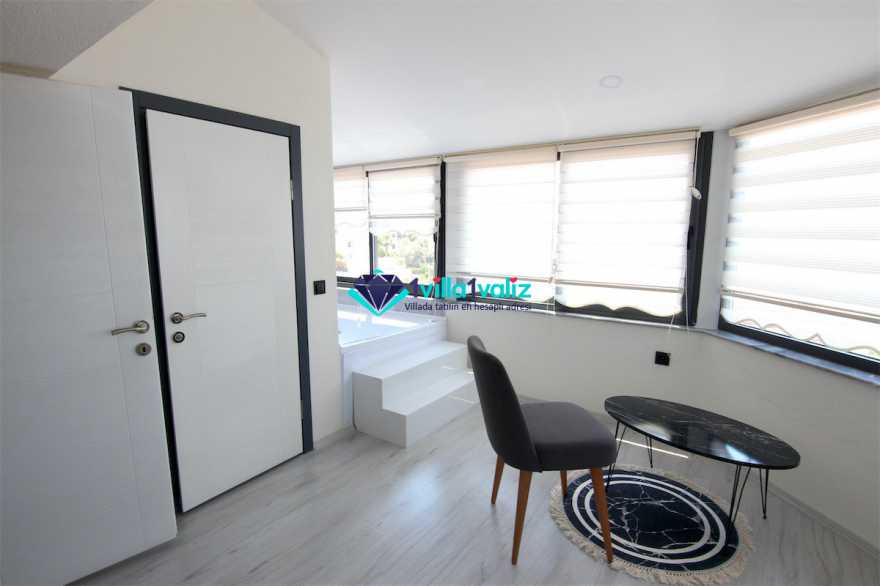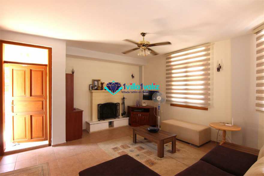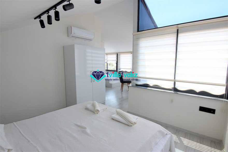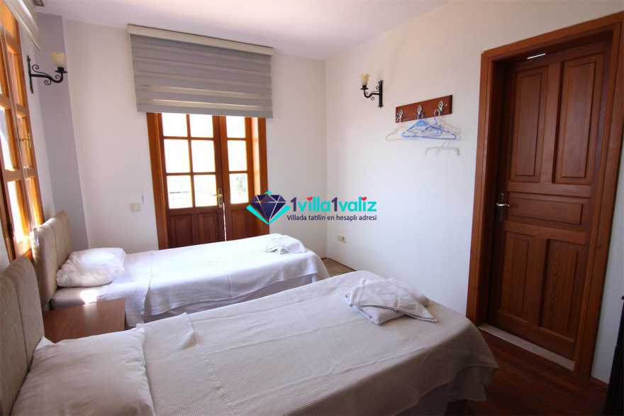 - Kiralık villamız çatı katında tek kişilik katlanabilir bir yatağa sahiptir. Ayrıca salonda yer alan L şeklindeki oturma gurubu çift kişilik yatak olabilmektedir. Böylece konaklama kapasitesi 7 kişiye kadar çıkartılabilmektedir.