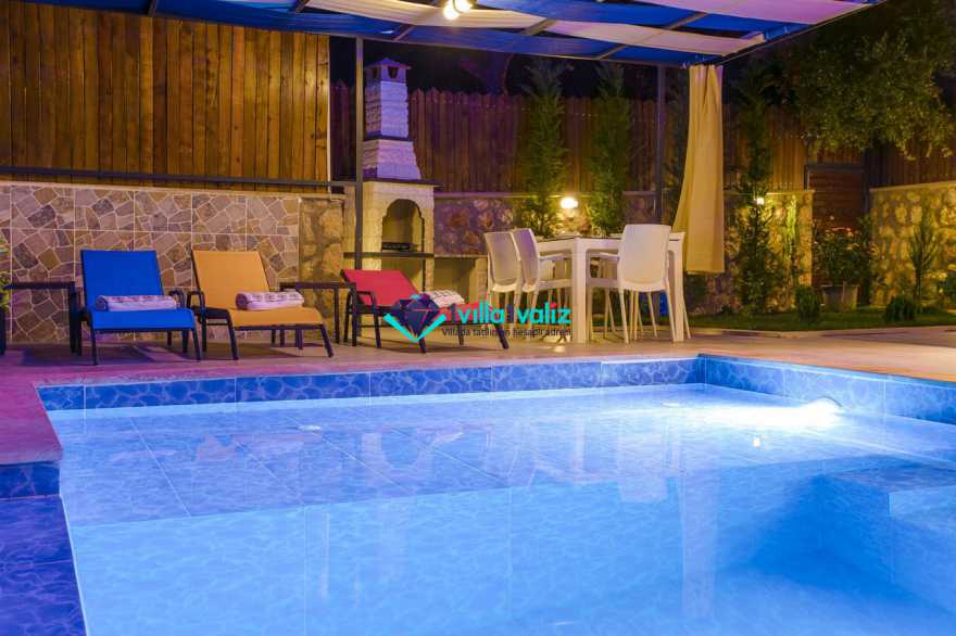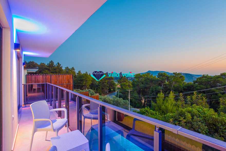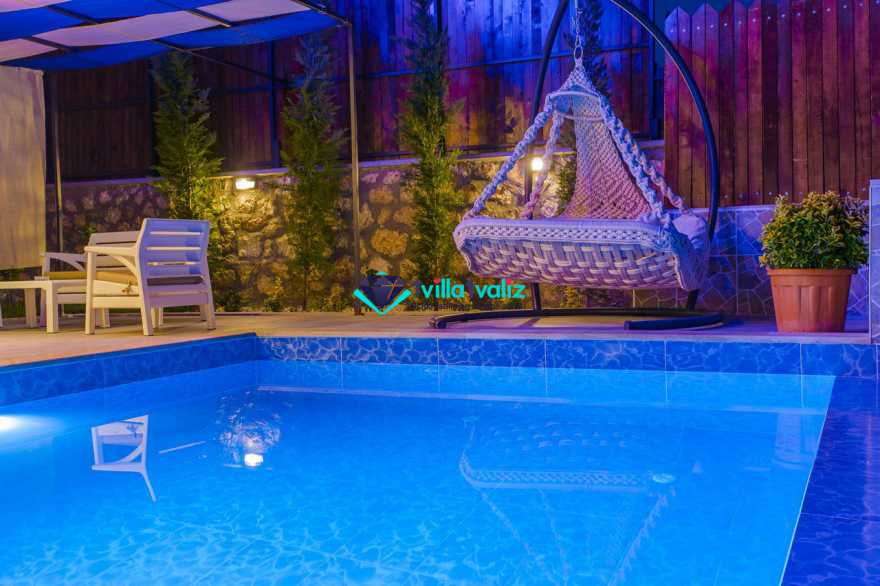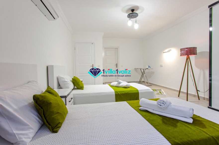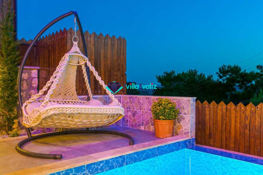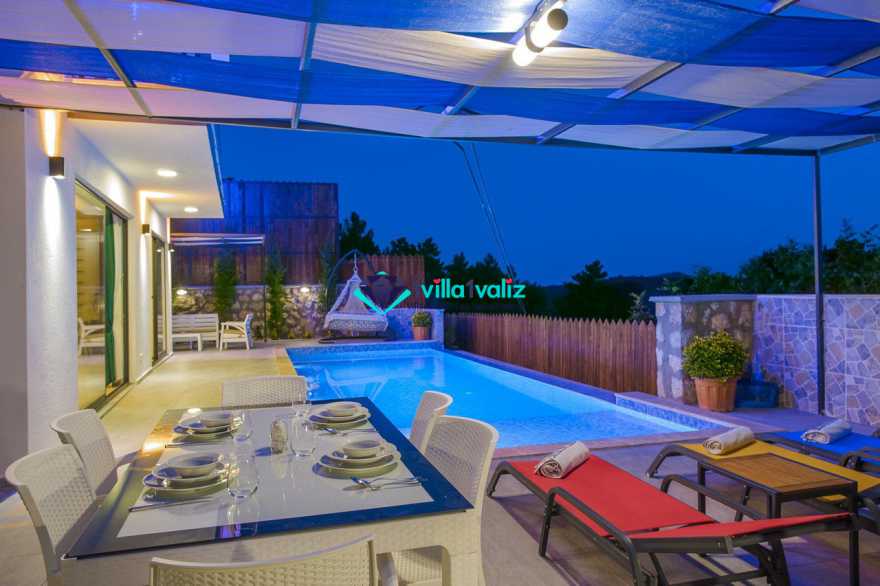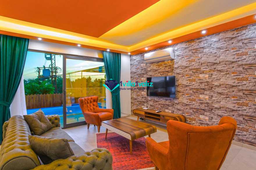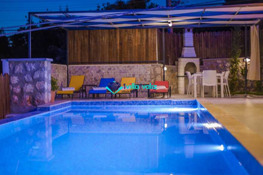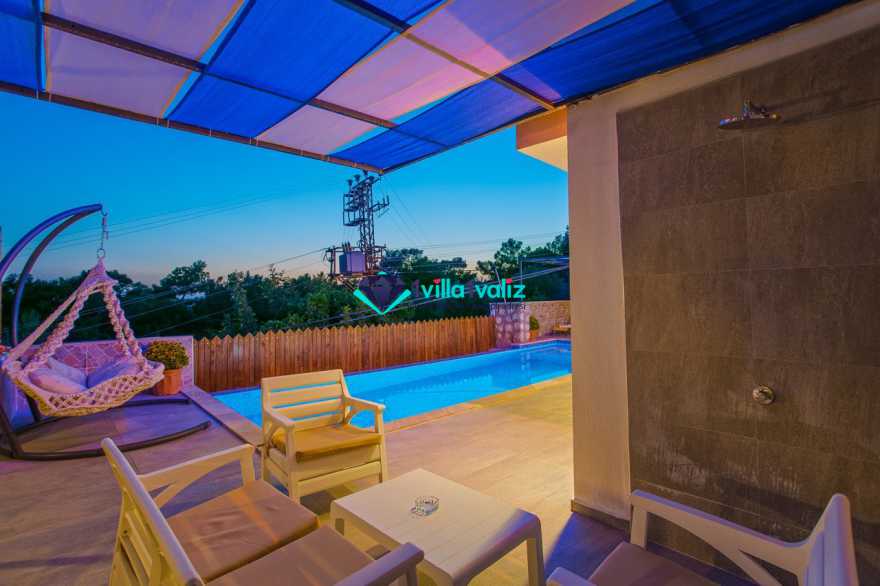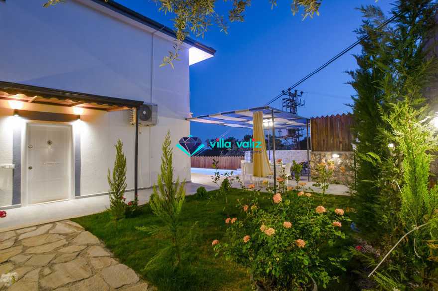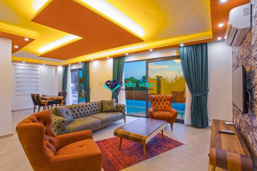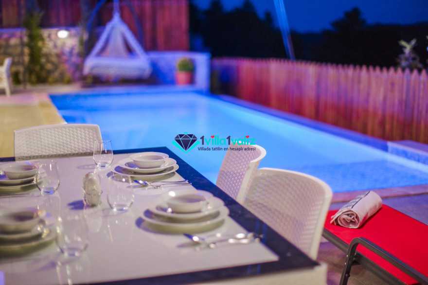 Villamız kalkan üzümlü bölgesinde konumlanmıştır. 2 yatak odalı 4 kişilik kapasiteye sahiptir. Muhafazakar aileler uygun özel yüzme havuzu ve havuz terası tamamen korunaklıdır. Balayı çiftlerine özel olarak süit yatak odasında jakuzi bulunmaktadır .Çocuklu aileler için oldukça uygun ve çocuk havuzu bulunmaktadır. Lüks eşyalar kullanılmıştır. Villamızın salonundan havuz terasında çıkış yapılmaktadır.