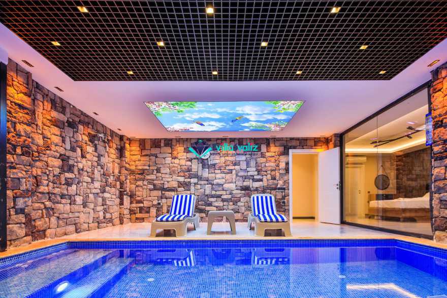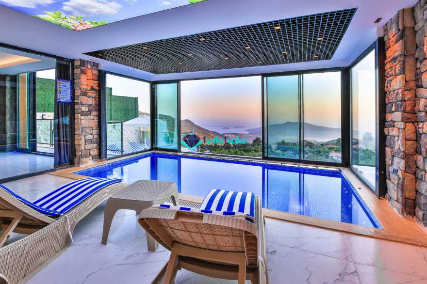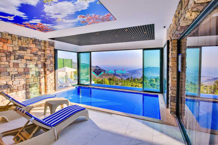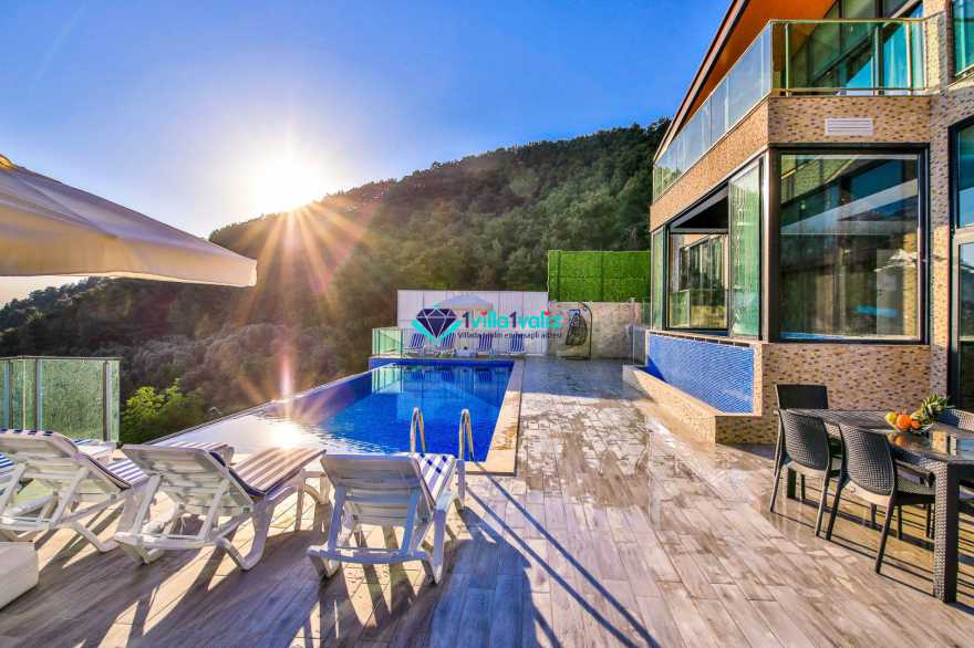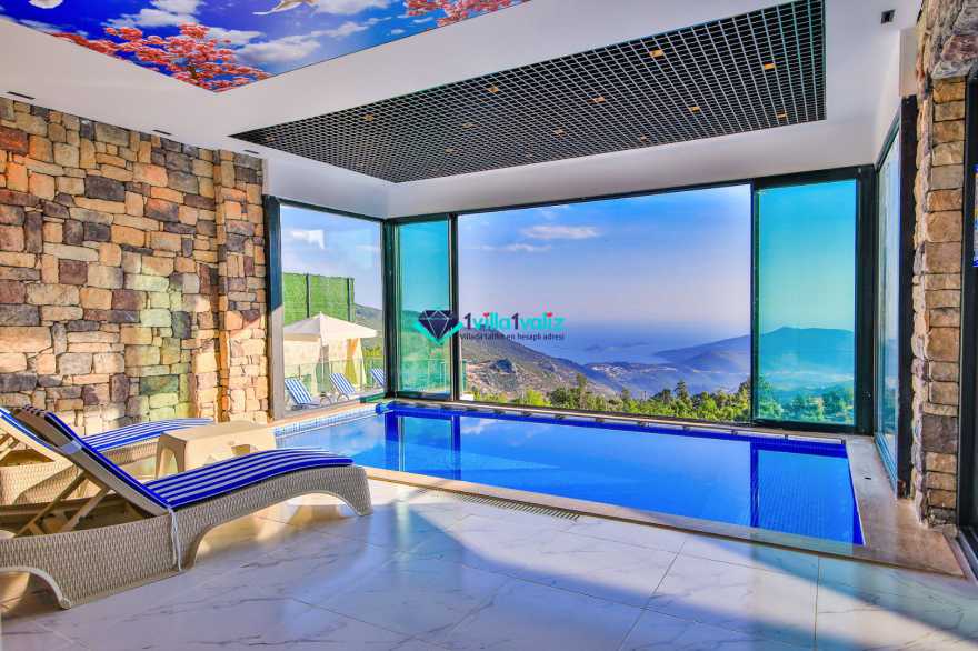 Muhteşem doga ve günbatımı manzaralı acık ve ısıtmalı kapalı havuzlu jakuzili modern villa