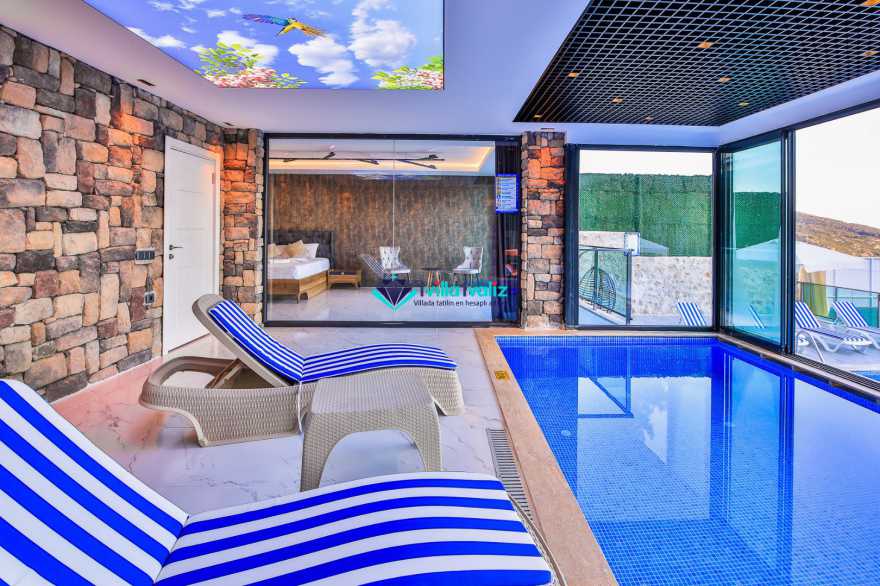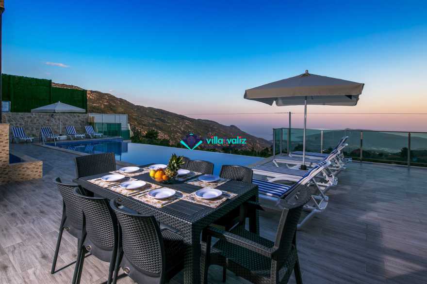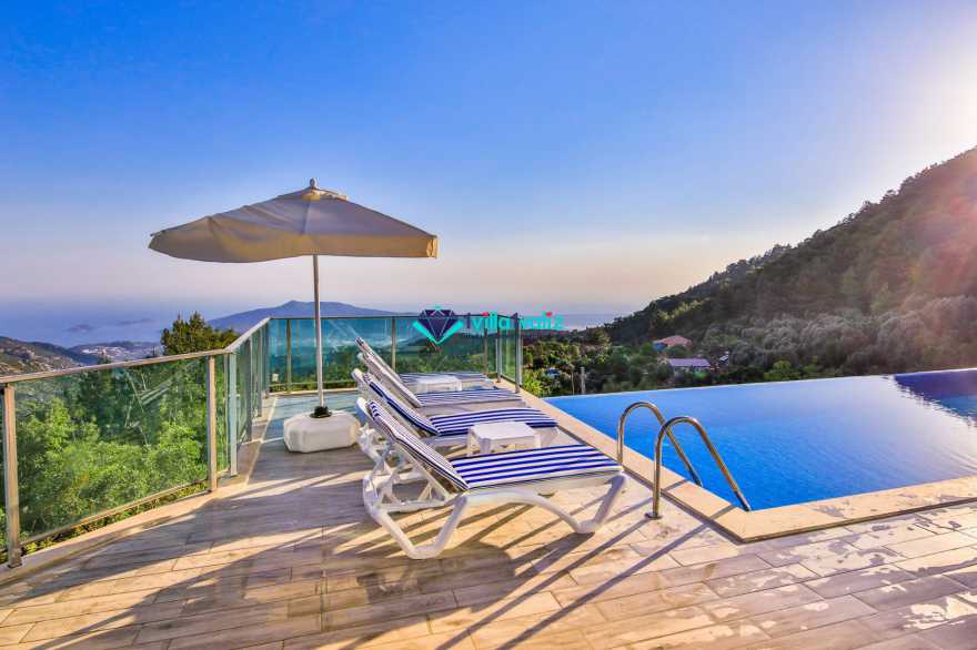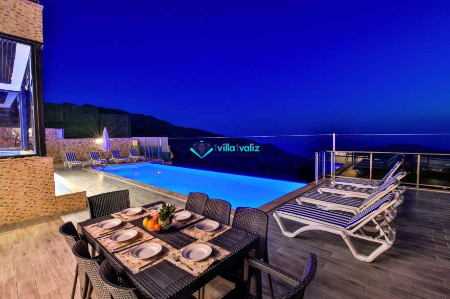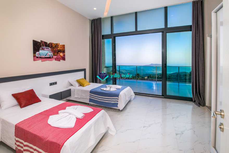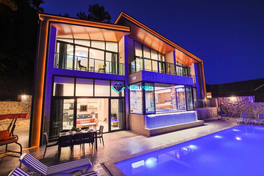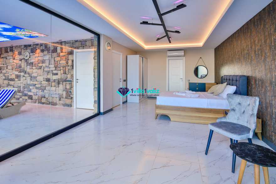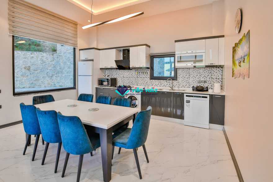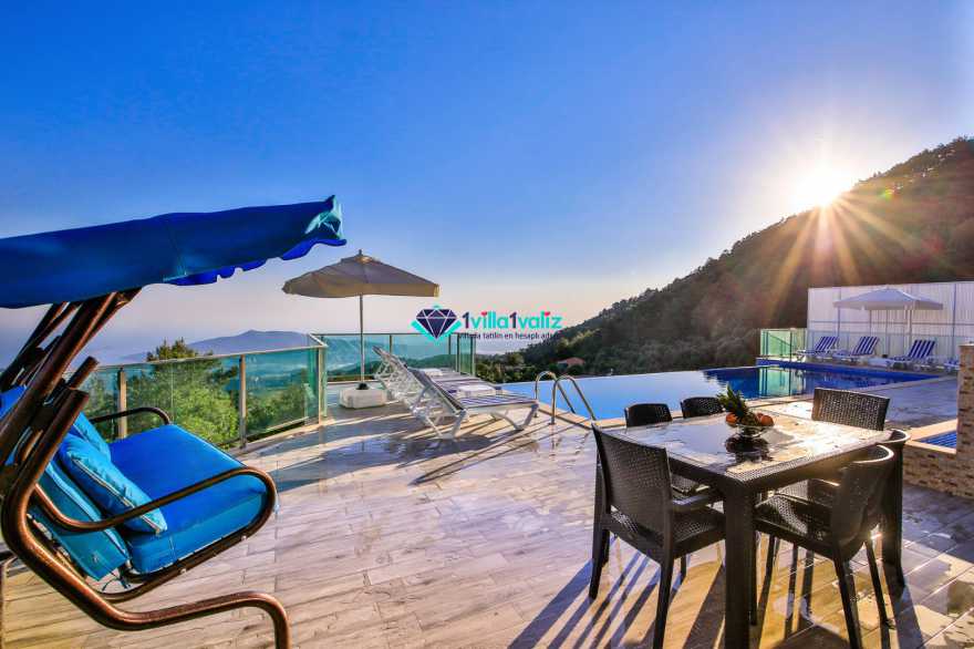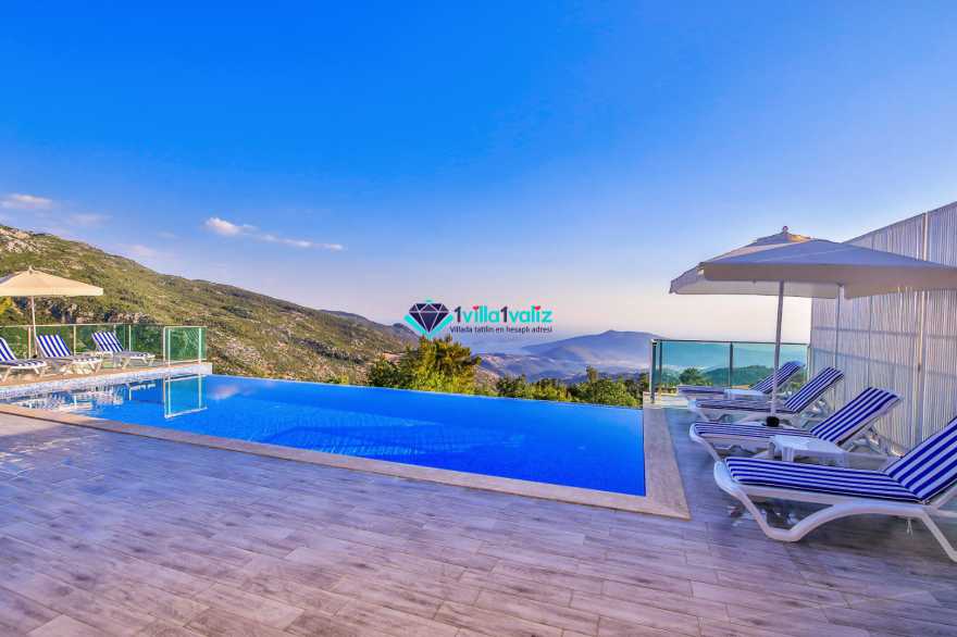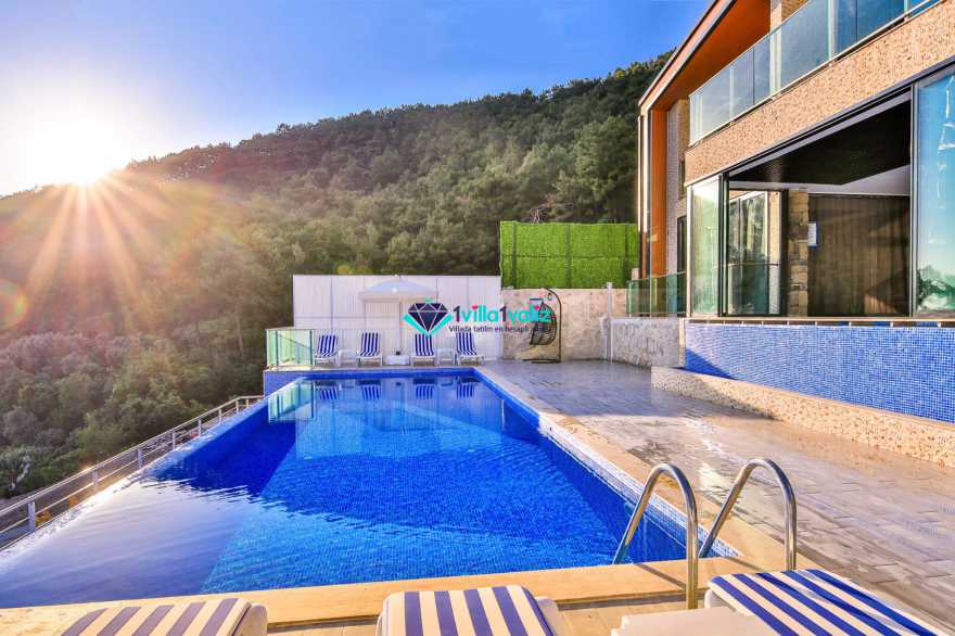 Kalkan İslamlar' da muhteşem deniz ve doğa manzarasına sahip modern kiralık tatil villamızdır. Toplam 4 tane suit yatak odasından oluşan açık mutfak salonu bulunan tatil villamız İçerisinde son derece modern eşyalar ile dizayn edilmiş olan villamızın kapalı ısıtma havuzu mevcuttur. Toplam da 8 kişi konaklama kapasitesine sahip olan villalarımızdan 2 adet bulunmakta olup kalabalık aileler içinde iki villa olarak hizmet verilebilmektedir. Kiralık villamız özel korunaklı havuzlu olup muhafazakar aileler için ideal seçeneklerimizdendir. .Villamız'dan İslamlar merkeze, market ve restorana 2 km uzaklıkta bulunmaktadır. Deniz ve Kalkan merkeze ise 12 km uzaklıktadır.Ayrıca bu villamız yanında aynı özellikeler Villa Kalis1 ,Villa Kalis 2 ve villa Kalis 3 bulunmaktadır.