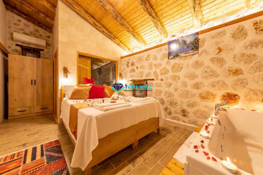 Villa Kayadibi Kalkan ulugöl bölgesinde yer almaktadır. 2 yatak odasına sahip tatil villamız 4 kişilik konaklama kapasitesine sahiptir. taş ve ahşam mimariye sahip olan villamız doğa içerisinde yer almaktadır. Havuz alanı bahçe alanı ile sizlere keyifli bir tatil ortamı sunmaktadır. Özellikle aileler için ideal bir seçenek olan Villamız muhafazakar hassasiyete sahip misafirlerimiz içinde uygun bir tatil ortamı sunmaktadır.