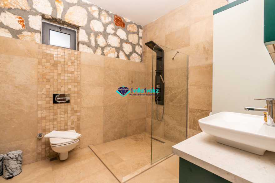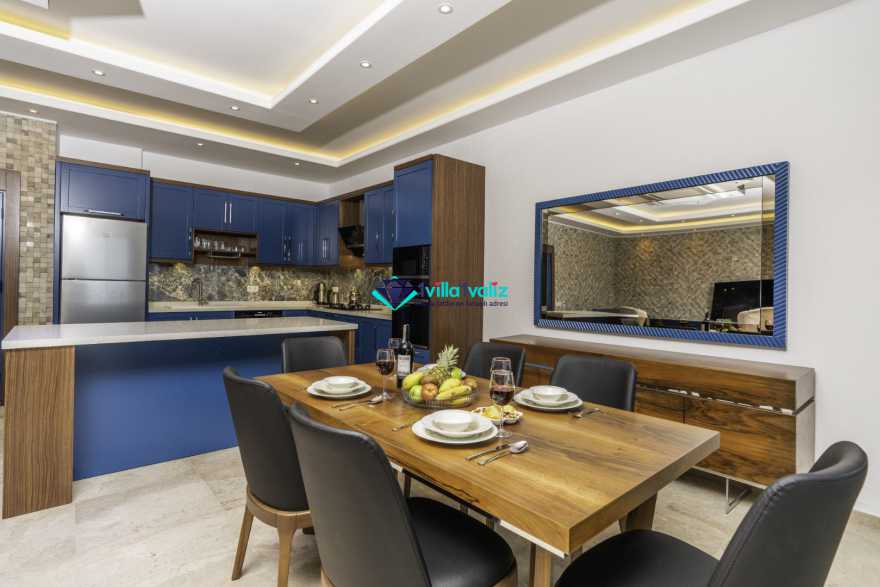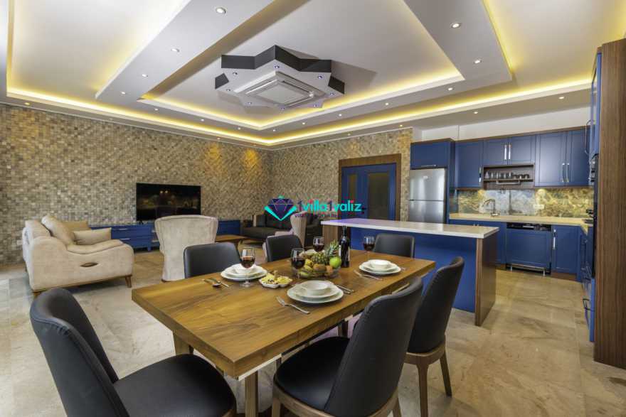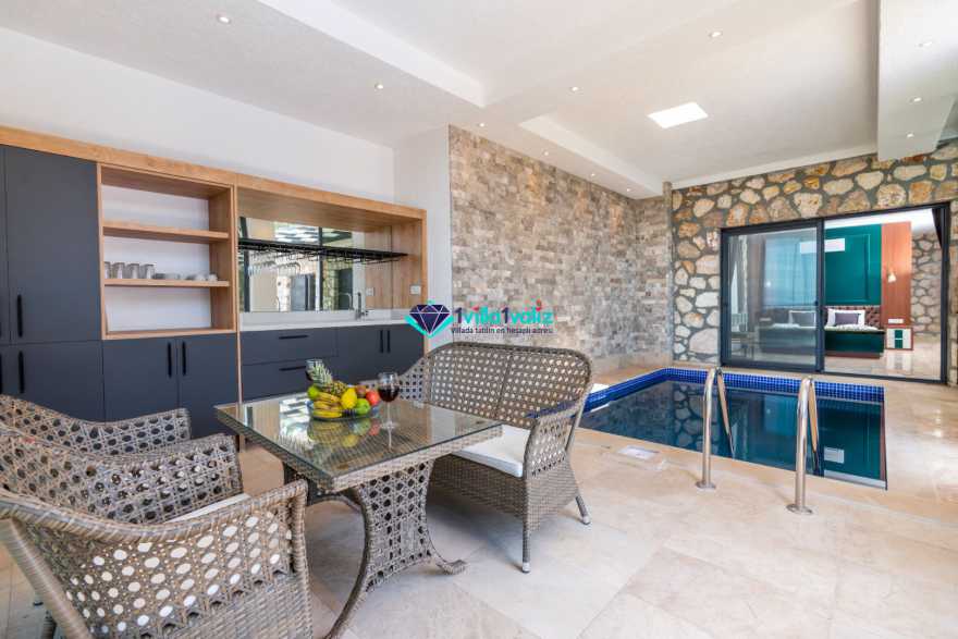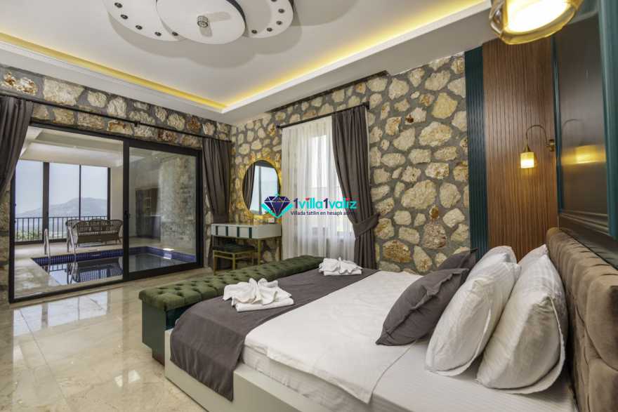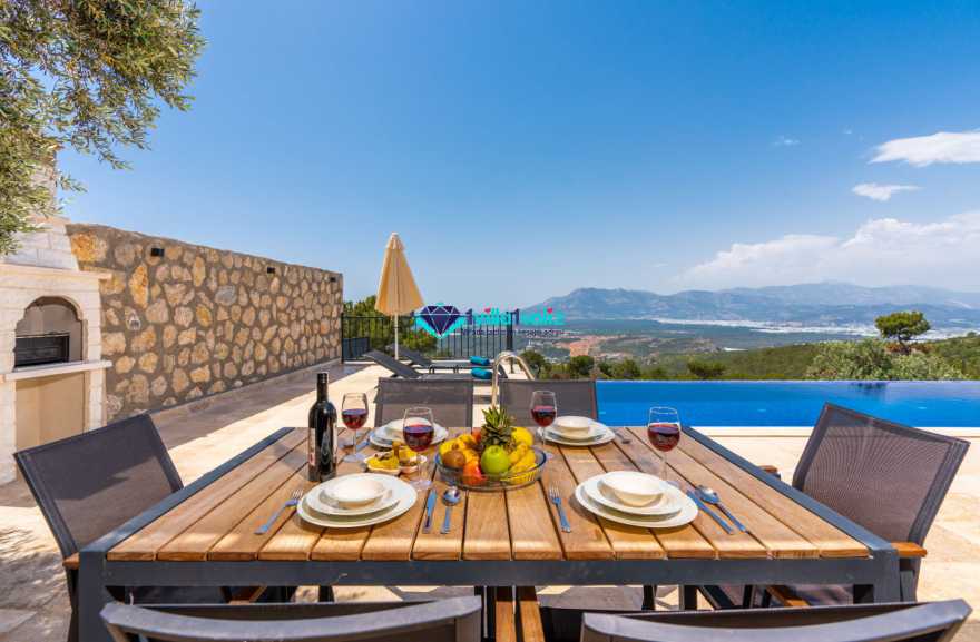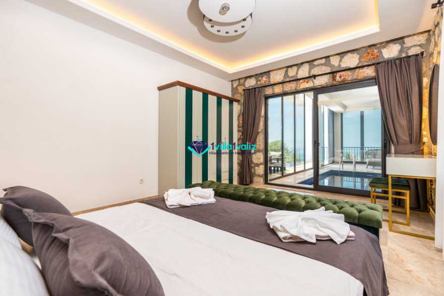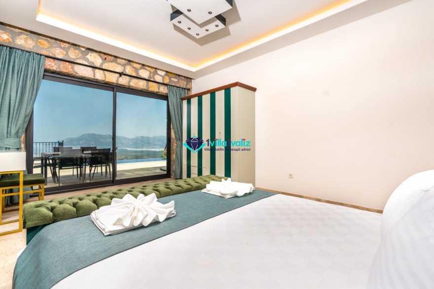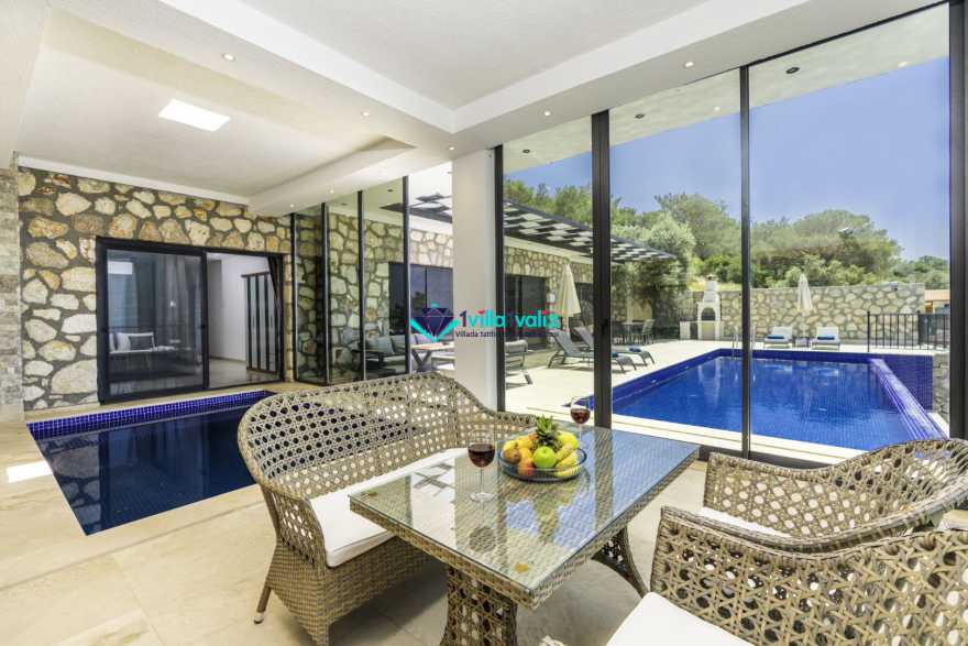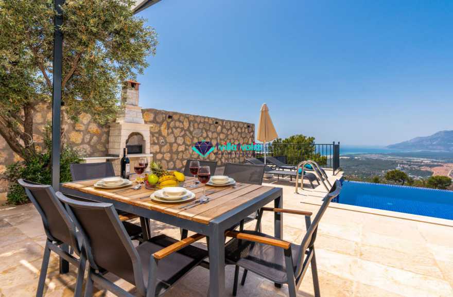 Villamız Kalkan Patara mevkiinde çam ağaçlarının arasında konumlanmıştır; doğa ve Patara denizi manzarasına panoramik açıdan sahip muhteşem villamızdır. Özel yüzme havuzu ve havuz terasında harika zamanlar geçirebileceğiniz gönlünüzce eğlenip güneşlenebileceğiniz bir ortama sahiptir. Villamızın etrafının korunaklı olması dolayısıyla havuz ve havuz terası dışarıdan gözükmemektedir.