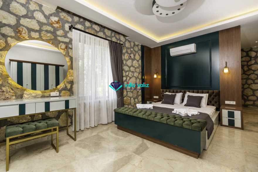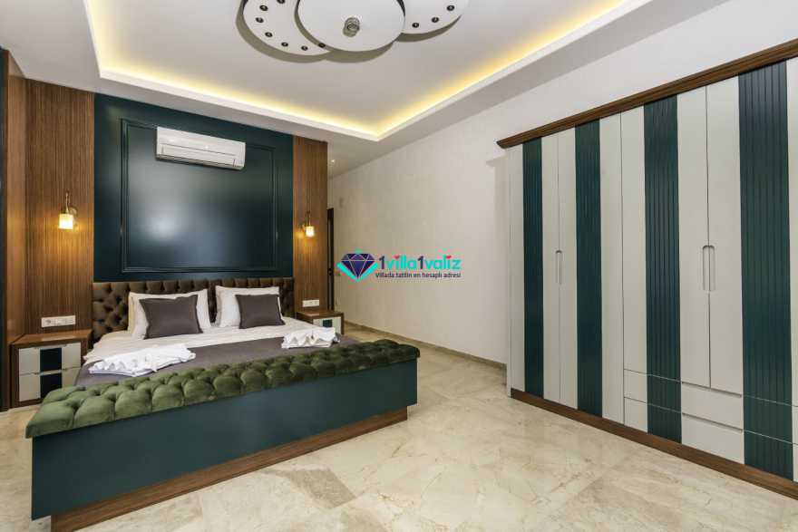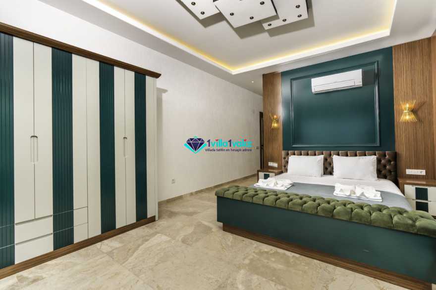 1. Yatak Odası : 1 çift kişilik yatak, klima, komodin, makyaj masası, elbise dolabı, jakuzi ve banyo tuvalet bulunmaktadır.