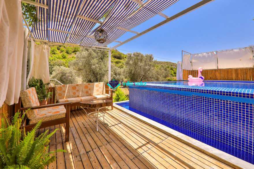 Villa Lal Kalkan Patara konumunda bulunmaktadır. Yazlık villamız etrafı çevrili olduğu için korunaklıdır. Siz muhafazakâr kişiler ve yeni balayı çiftlerimizin daha çok tercih ettiği kiralık villamızdır. Bu villanın yapımı Mayıs 2019 tarihinde tamamlanmış olup hala yeniliğini korumaktadır. Villa lal konumu itibarı ile Patara plajına 3 km uzaklıkta bulunmaktadır. Denize ve merkeze oldukça rahat şekilde ulaşım sağlanmaktadır. 2 yatak odası bulunan villamızın kapasitesi 4 kişiliktir. Taş ve ahşap malzemeler kullanılarak dekore edilen villamız ferah bir ortama sahiptir. Villanın süite yatak odasında, jakuzi bulunmaktadır. Tatilinizde sadece villada zaman geçirmek istemezseniz Patara bölgesinde at biniciliği yapılmaktadır. Ayrıca safari merakınız varsa jip ile safari turu ile keyifli vakitler geçirebilirsiniz. Villa Lal siz değerli müşterilerimizi sabırsızlıkla beklemektedir. Sizleride unutulmaz tatil anıları yaşamak için villa Lal’a bekleriz