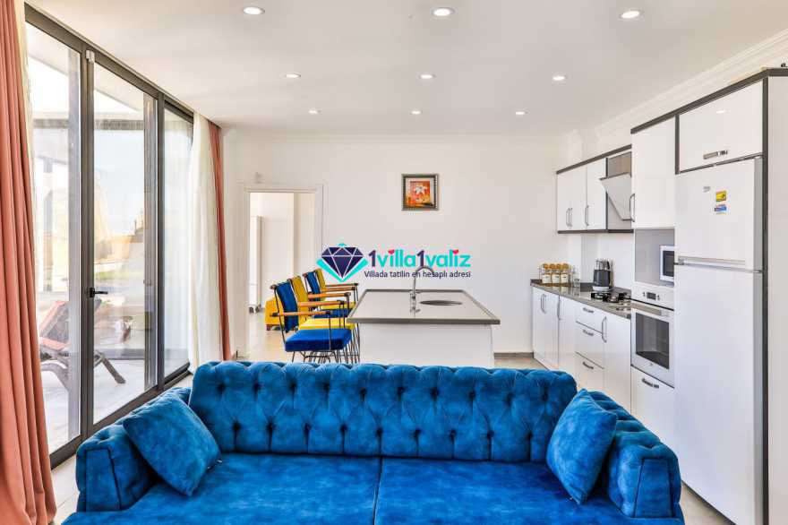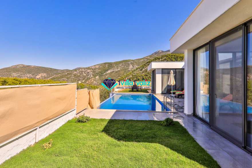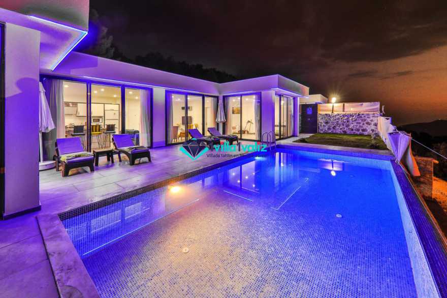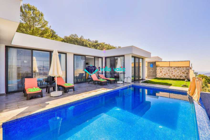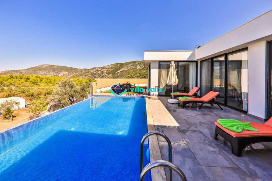 Tatil villamız, Kalkan mahallesinin Üzümlü Lapaz mevkisinde konumlanmıştır. Doğa ile iç içe olan tatil villamız, panoramik doğa manzaralı bir villadır. Kalkan merkeze, 11 km mesafededir. Villamızın havuz terası yabancı gözlerden uzak, muhafazakar bir villadır.