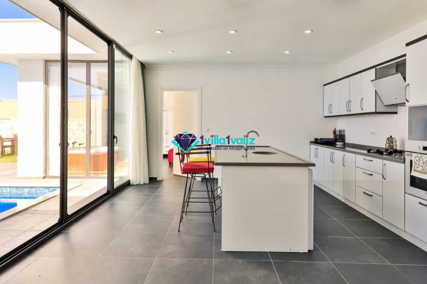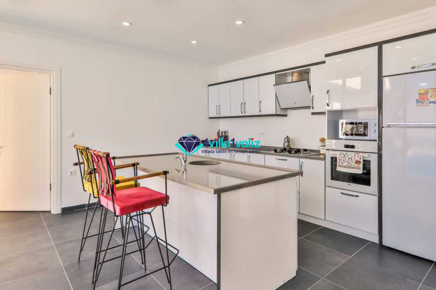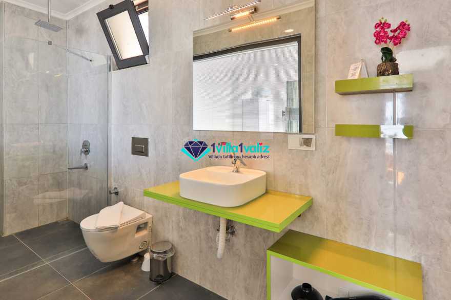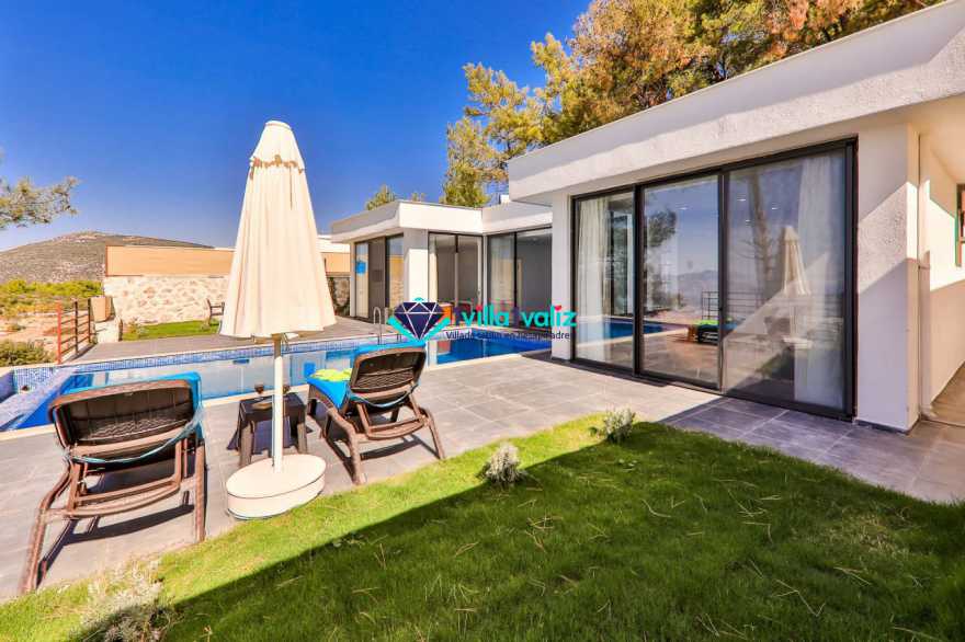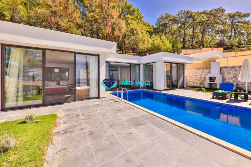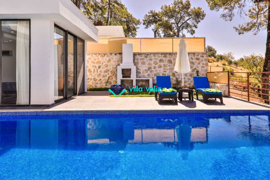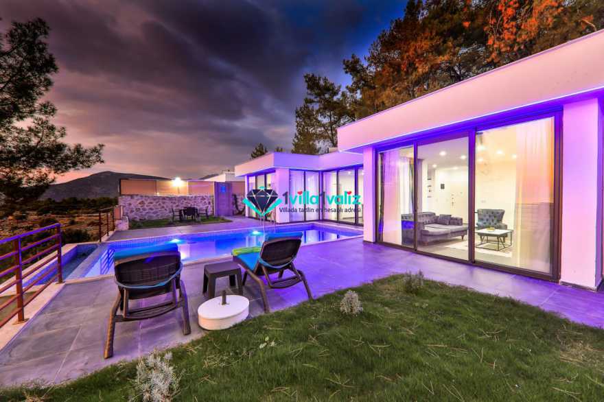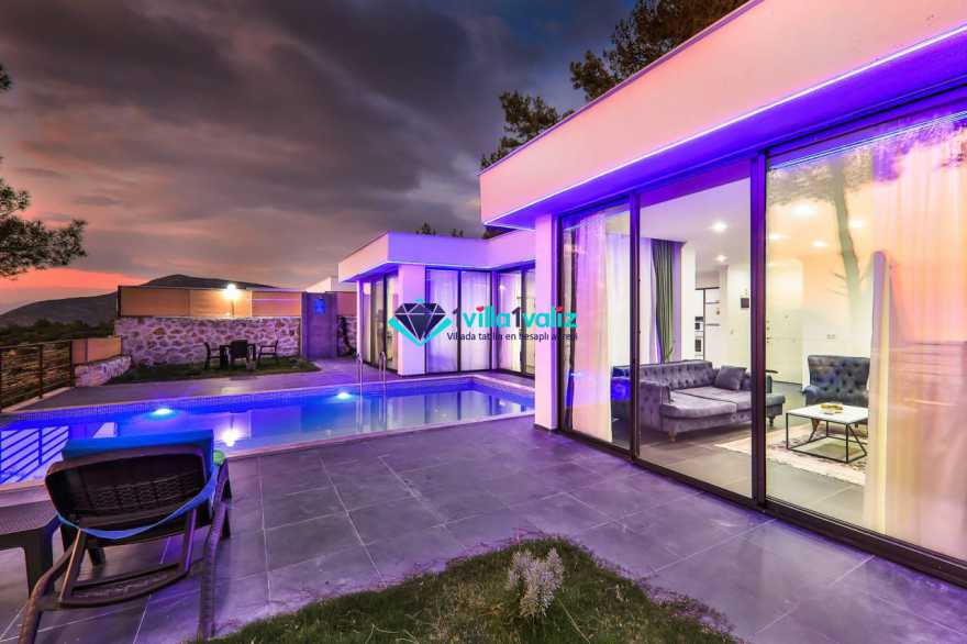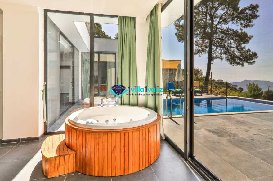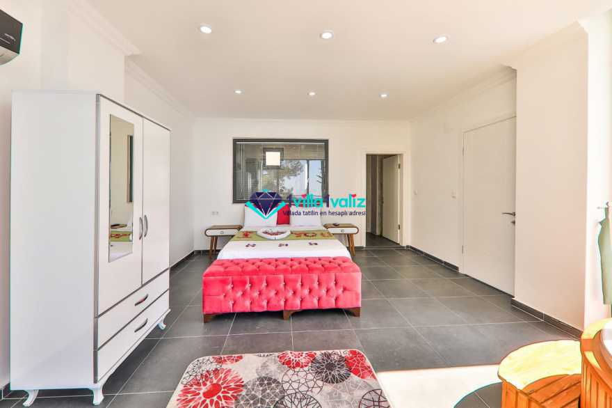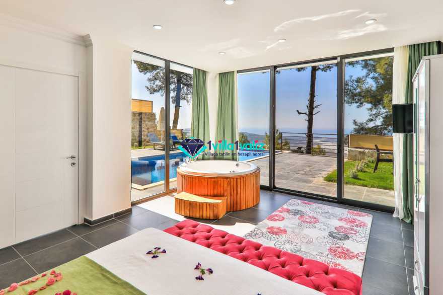 Kalkan Lapaz Mevkii'nde bulunmaktadır. Kiralık villamız tek yatak odalı olup 2 kişilik kapasitededir. Deniz manzaralı villamızın yatak odasında tüm yorgunluğunuzu atabileceğiniz bir jakuzi bulunmaktadır. Kiralık yazlığımızın salonu sade ve şık bir şekilde dekore edilmiştir. Villamızın bahçe katında özel yüzme havuzu ve şezlonglar bulunmakta olup dışarıdan görünmeyecek şekilde tasarlanmıştır. Bu haliyle muhafazakar balayı villası arayan çiftlerimiz için uygun bir tercihtir.