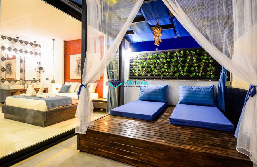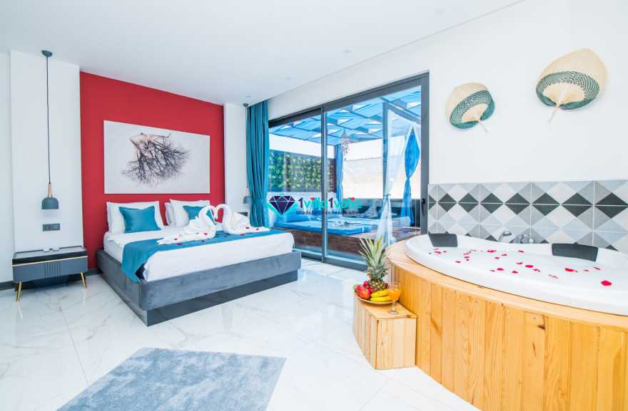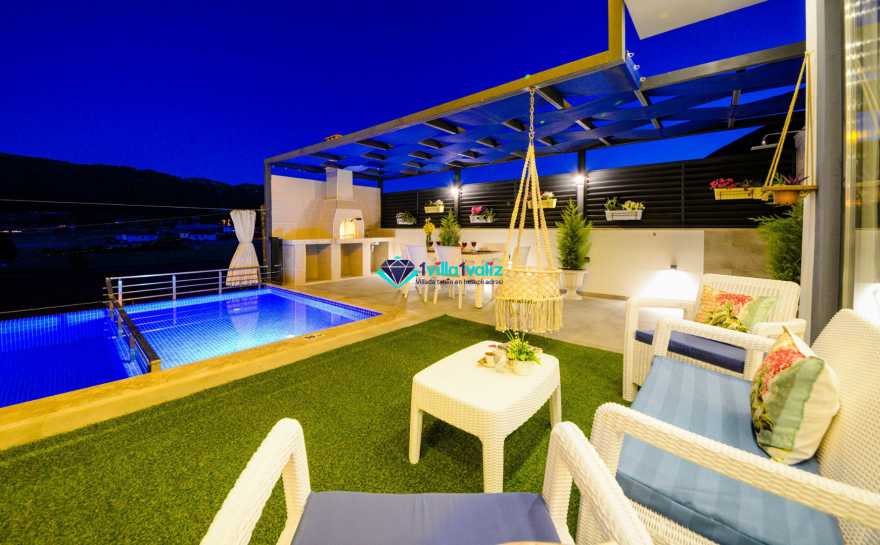 Villa Lavinya, Antalya'nın gözde tatil beldelerinden birisi olan Kalkan'ın Sarıbelen mevkiinde bulunmakta olup, 4 kişi kapasitelidir. Yeşilin her tonunu önünüze serecek olan villamızda, tatilinizin huzur dolduğunu fark edeceksiniz. 2 yatak odası ve 3 banyosu bulunan doğa manzaralı Villa Lavinya Kalkan'a 12 km uzaklıkta kalıyor. Korunaklı havuzu sayesinde yabancı gözlerden uzak, ailenizle veya arkadaşlarınızla tatilin tadını çıkarabileceksiniz. Amacımız sizi tatilinizde de kendi evinizdeymiş gibi hissettirmek ve keyif alabileceğiniz bir tatil imkanı sunmaktır. Havuz, jakuzi, sauna gibi tatilinizde size eşlik edecek konfor alanlarını çok seveceksiniz.
