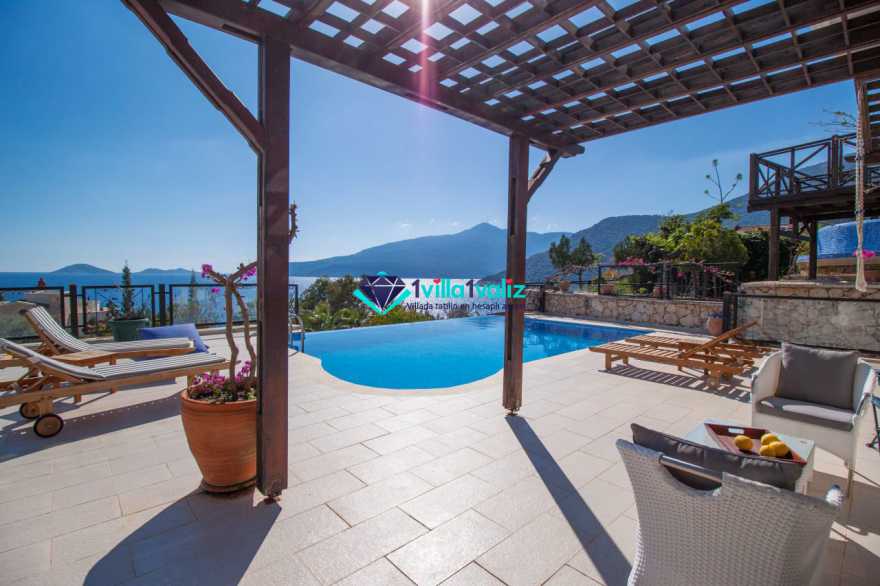 Kalkan merkezde bulunan deniz ve panoramik kalkan manzaralı, 2 adet jakuzili, 3 yatak odası ile 6 kişilik konaklamalara imkan sağlamaktadır. Kalkan merkeze ve restoran, market gibi yerlere 5 dakika mesafesindedir. Oldukça güzel bir manzaraya sahip villa özel havuzlu ve geniş aileler için ideal bir tatil villamızdır.