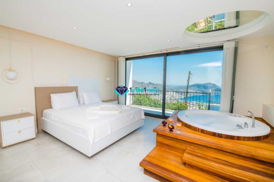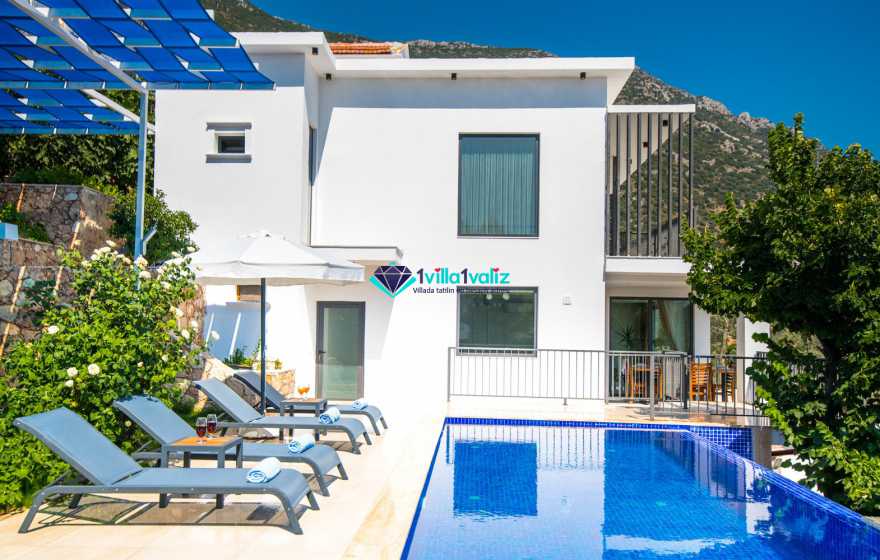Kalkan akbel de konumlanmıştır. 4 yatak odalı 8 kişilik kapasiteye sahiptir. Kalkan akbel de olup ulaşım sağlamak için oldukça uygundur. Deniz manzaralı ve kalabalık aileler için oldukça ideal olan villamız özel yüzme havuzunda keyifli vakitler geçirebilirsiniz. Kiralık yazlık villamız süit balayı odasında çift kişilik jakuzi bulunmaktadır.