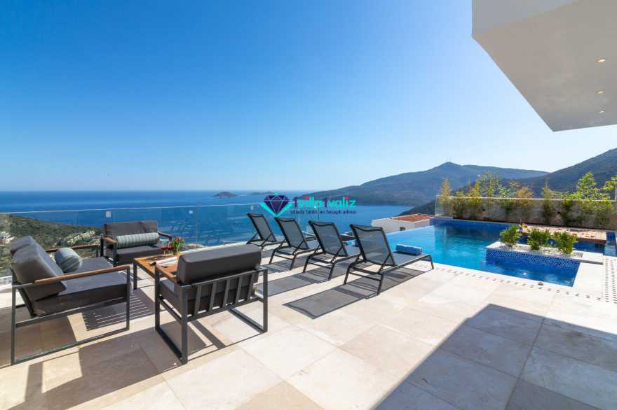 Kalkan Kalamar mevkiinde bulunan Villa Marvel; 3 yatak odası 6 kişilik konaklama kapasitesine sahiptir. Zevkli tasarımı ile son derece lüks, kaliteli tatil fırsatı sunacak olan villamız, modern mimarisi ve özgün dekorasyonu ile dikkat çekmektedir. Kalkan merkeze ve plaja yürüme mesafesinde bulunan villamız, sizlere ayrıcalıklı bir tatil imkanı sunuyor.