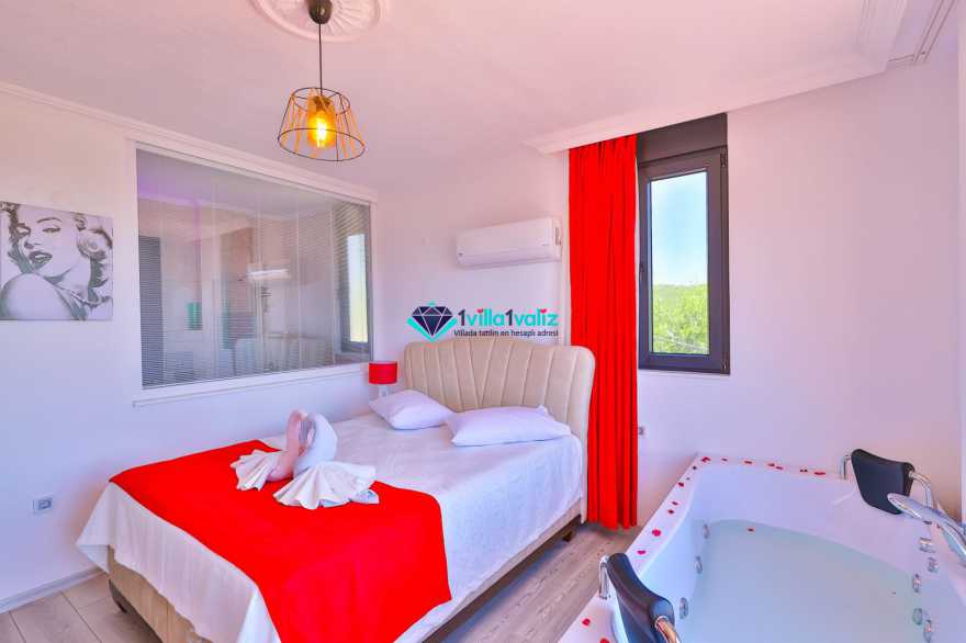 1.Yatak Odası: Çift kişilik yatak, makyaj masası, komodin,giysi dolabı,banyo. ve jakuzi bulunmaktadır.