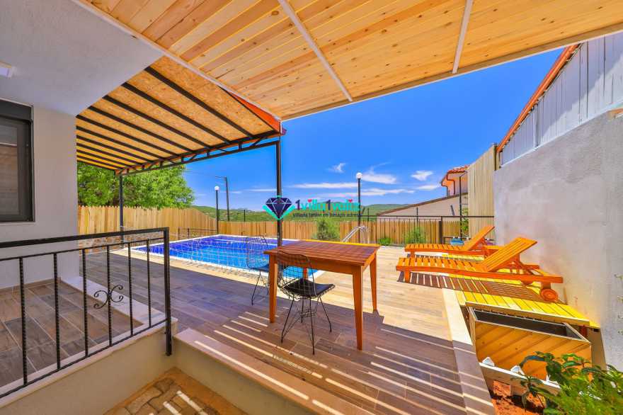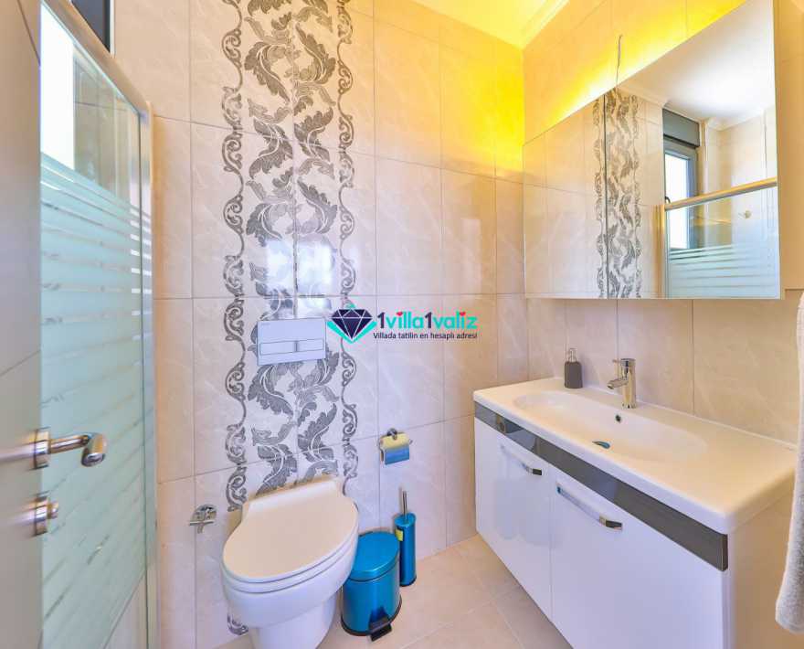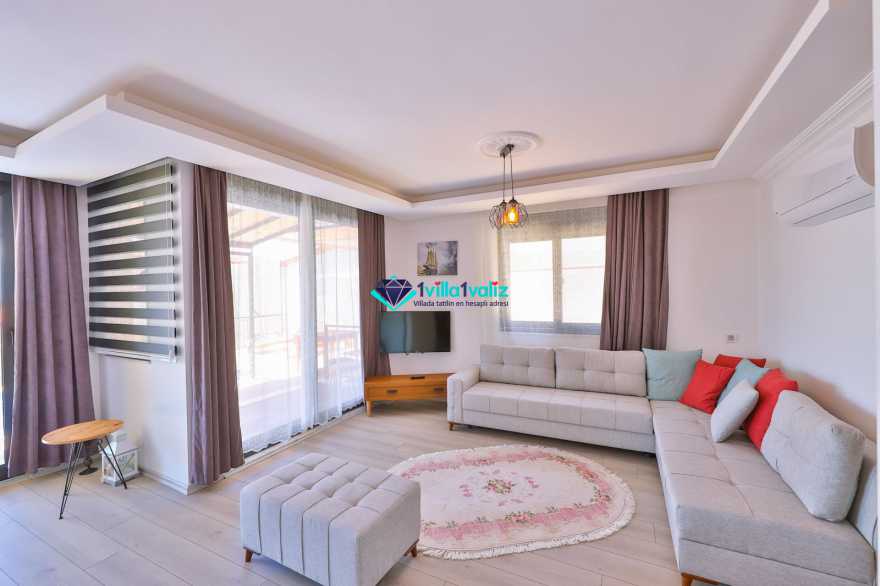 Salon: Oturma grubu,TV ünitesi, orta sehpa, havuz terasına geçiş bulunmaktadır.
