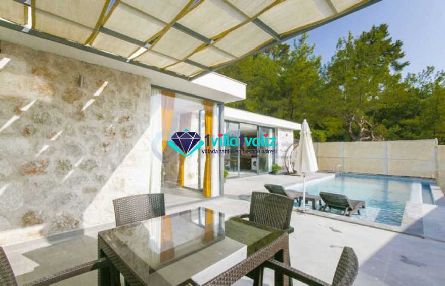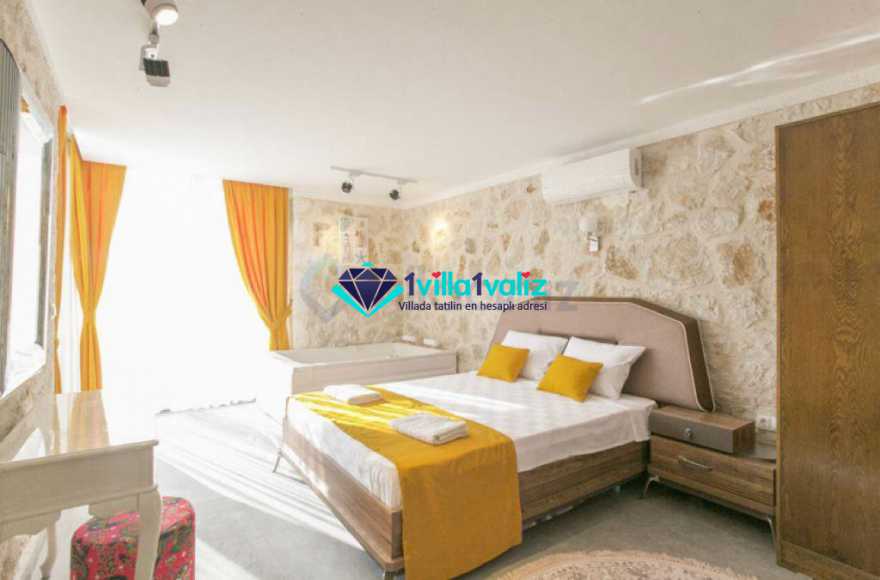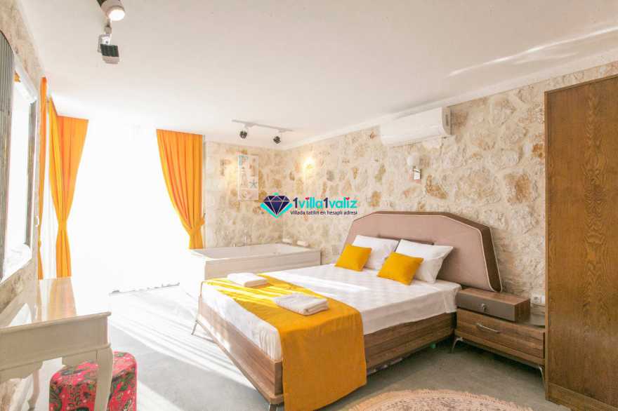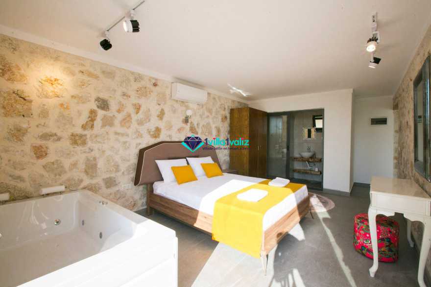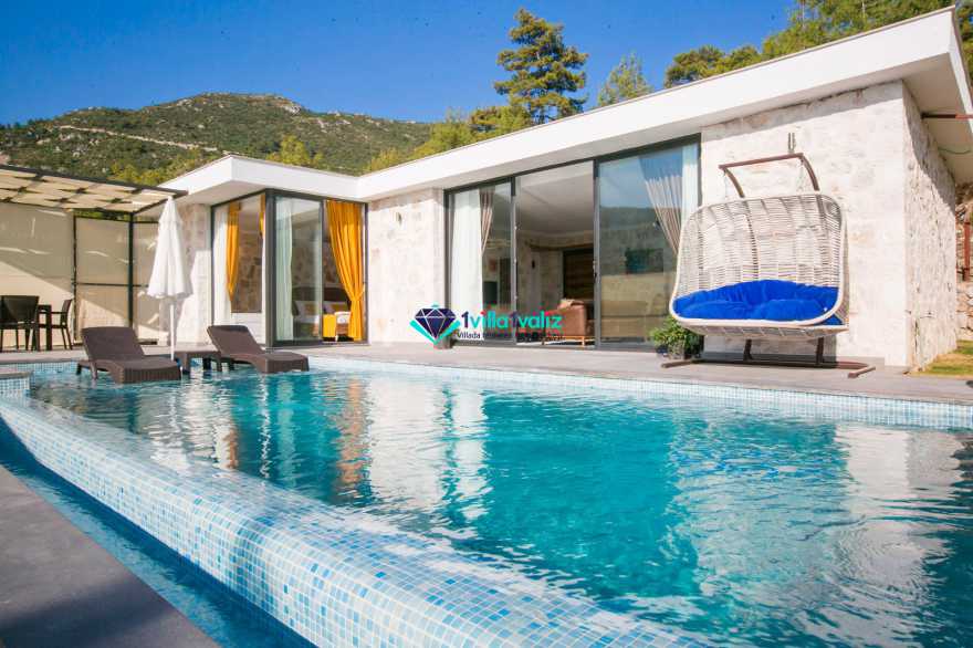 Kalkan İslamlar bölgesinde bulunmaktadır. Villamızda 1 tane yatak odası bulunmaktadır. Kapasitesi 2 kişi olan villamız şık mimari tasarımı ile sizlere mükemmel tatil imkânı sağlar. Villa Merlin’in 1 tane banyosu ve jakuzisi vardır. Havuzun olduğu terasın etrafı çevrilidir ve dışarıdan görünmemektedir. Bu yüzden villamız çoğunlukla muhafazakâr kişiler ve yeni balayı çiftleri tarafından daha çok tercih edilmektedir.