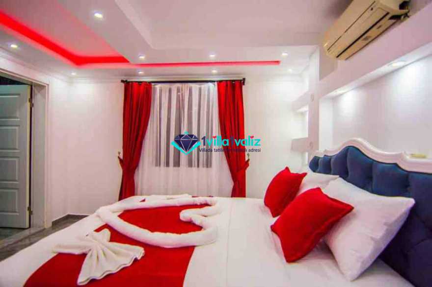 Villa Meryem Üzümlü; Kalkan Üzümlü'de yer alan, korunaklı havuzlu jakuzili balayı villamız, yeşillikler arasında gözlerden uzak tatil yapmak isteyen aileler ve balayı çiftlerinin gözdesi olan villalarımızdandır.Konumu itibariyle villamızdan Kalkan şehir merkezine ve sahile ortalama 12-15 dakika ulaşılabilmektedir.