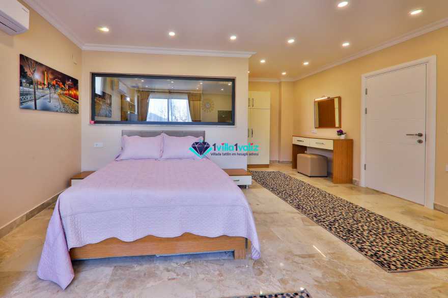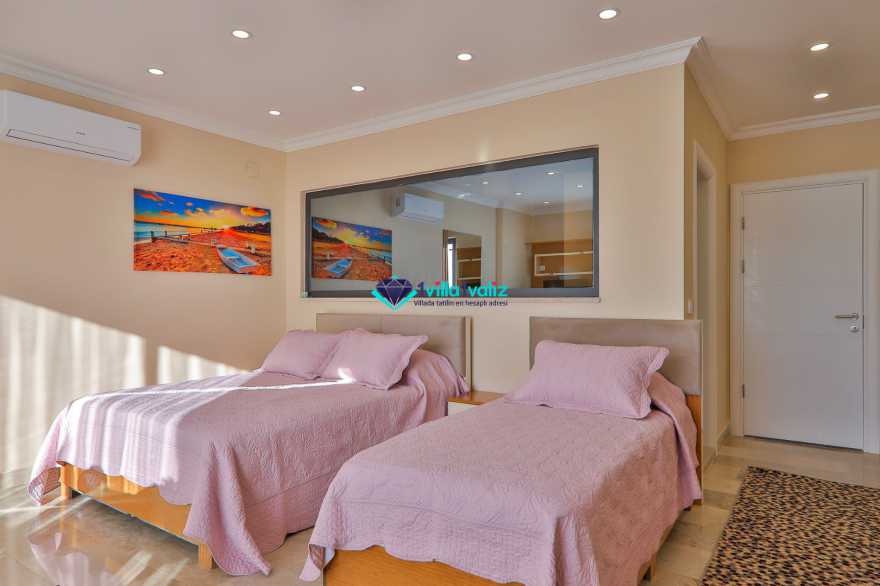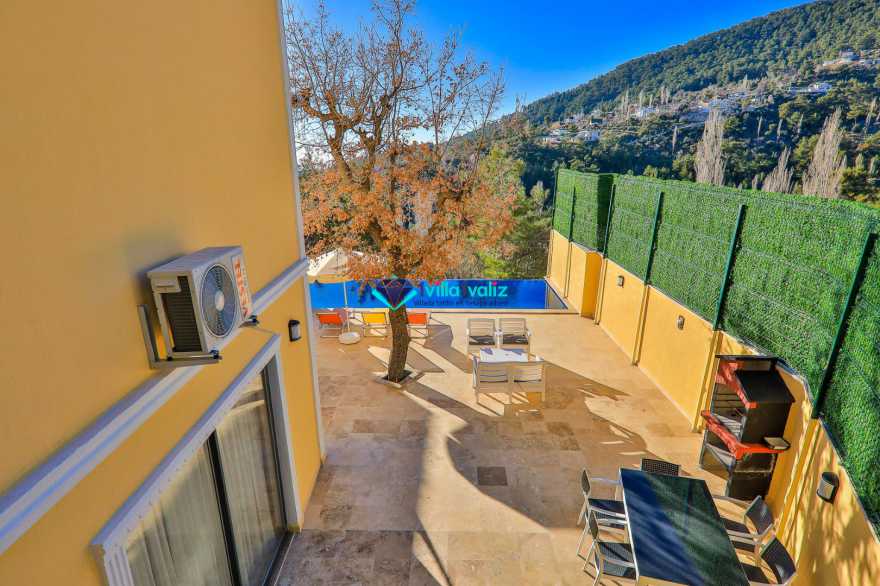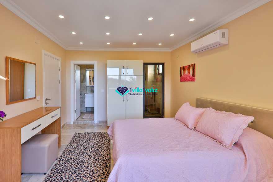 Villa Meşe, Kalkan İslamlar mevkiinde konumlanmakta olan muhteşem doğa manzarasına hakim kiralık villalarımız arasında yer almaktadır. Şık ve konforlu bir şekilde dizayn edilen villamızda 5 yatak odası bulunmakta olup , 11 kişiye konaklama imkanı sağlamaktadır. Yatak odalarından 1 tanesinde bir tane çift kişilik ve bir tane tek kişilik yatak bulunmaktadır.Villamızın havuz ve havuz terası korunaklı hale getirilmiştir. Dışarıdan bir kimse tarafından görünmemektedir. Muhafazakar geniş aileler ve arkadaş grupları rahatlıkla tercih edebilirler. Tüm yılın vermiş olduğu yorgunluğu atabileceğiniz hamam, savuna, buhar odası, ısıtma havuzu ve spor salonu bulunmaktadır. Tatilinizi keyifli bir hale getirebilmek için şark köşesi, masa tenisi ve langırt yer almaktadır. Sevdiklerinizle keyifli bir tatil geçirmek için Villa Neşe'yi tercih edebilirsiniz.