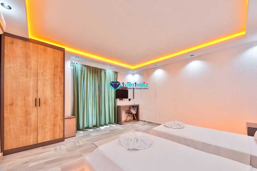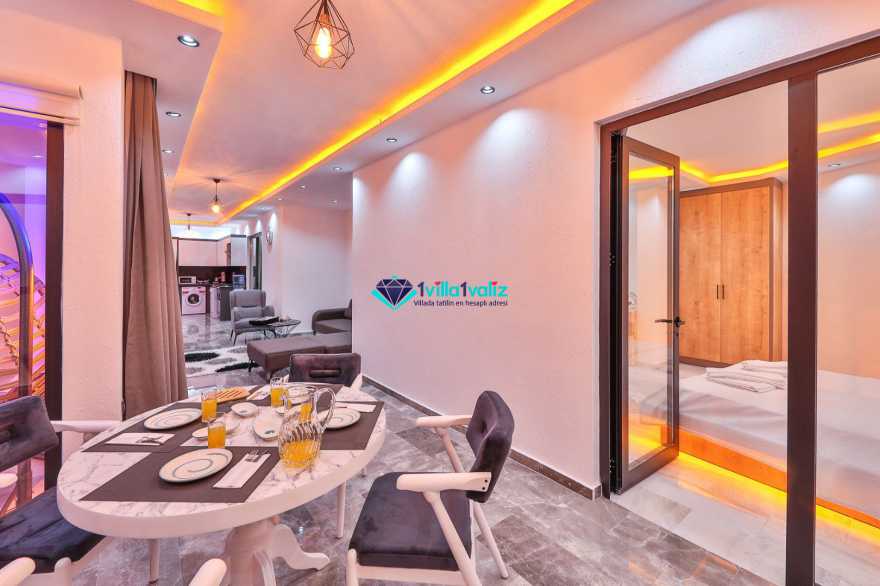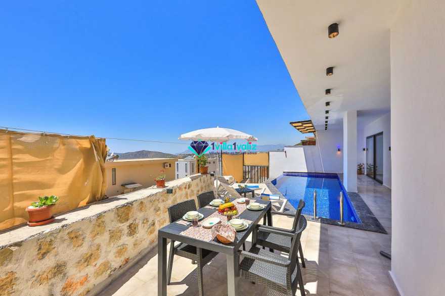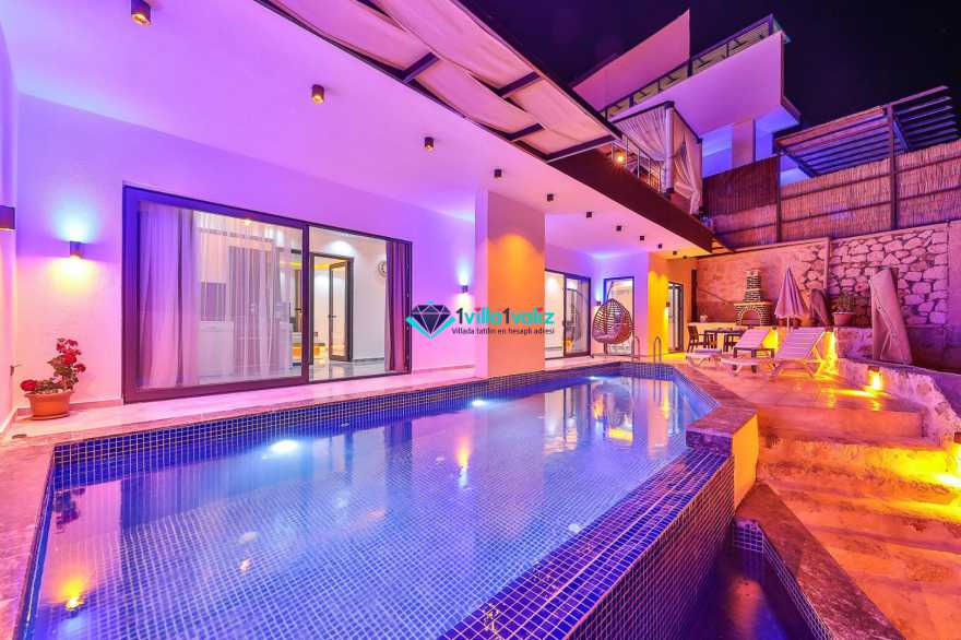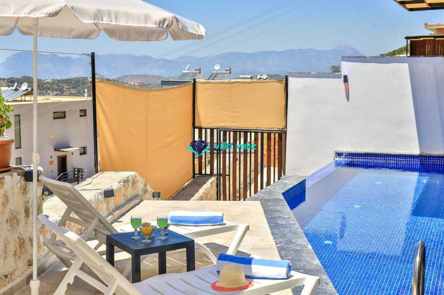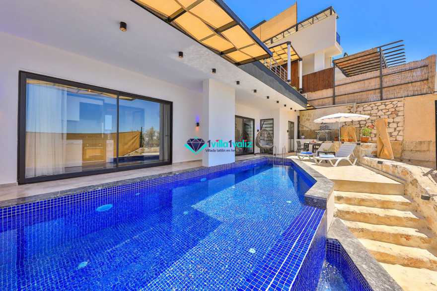 Villamız Kalkan Kördere bölgesinde yer almaktadır. 2 yatak odasına sahip tatil villamız 4 kişilik konaklama kapasitesine sahiptir. Kısmi deniz manzaralı konuma sahip olan tatil villamızın havuz alanı sizlere keyifli bir tatil ortamı sunmaktadır. Balayı çiftleri ve çekirdek aileler için ideal bir seçenek olan muhafazakar hassasiyete sahip misafirlerimiz içinde uygun bir tatil ortamı sunmaktadır.