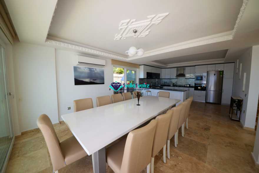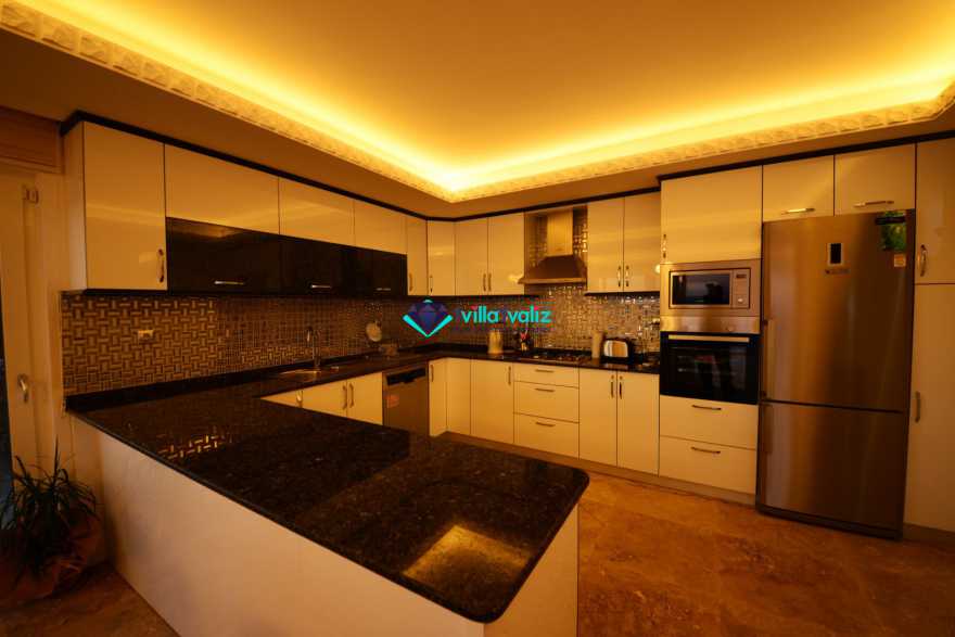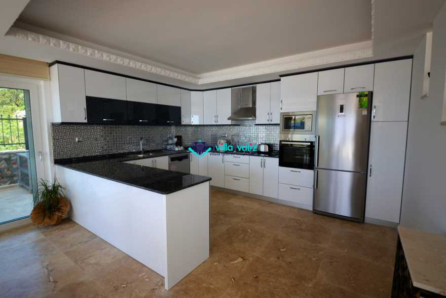 Modern mutfak, deniz manzaralı (havuz katında), buzdolabı, bulaşık makinası, çamaşır makinası, ankastre fırın, mikrodalga fırın, ankastre 4’lü ocak, elektrikli su ısıtıcısı (ketıl), ekmek kızartma makinası, 14 kişilik yemek takımı, tava, tencereler, çatal, bıçak, su sebili vs.