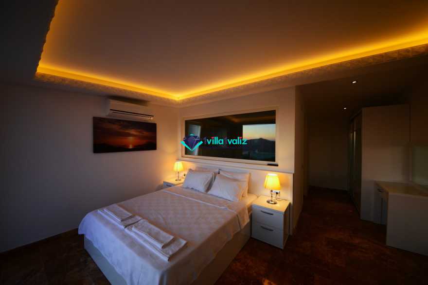 5. Yatak Odası (2. Kat) : Deniz manzaralı suit oda, 1 adet çift kişilik yatak, komidin, makyaj masası, LCD TV, klima, balkon, sehpa ve sandalyeler, banyo ve tuvalet bulunmaktadır.
