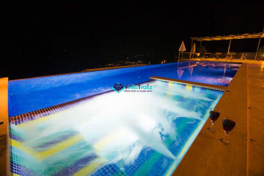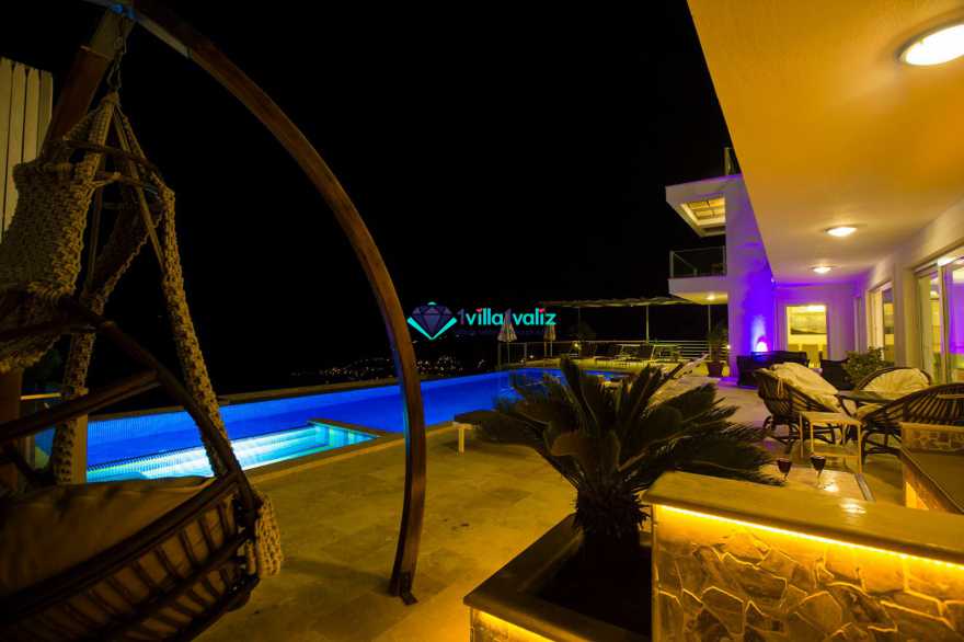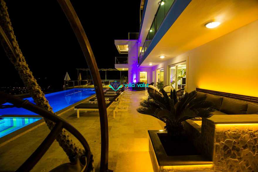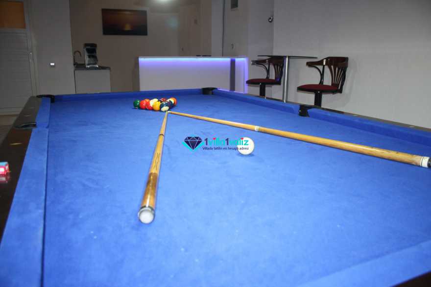 Havuz terasında özel yüzme havuzu,şezlonglar,güneş şemsiyeleri,14 kişilik bahçe yemek masası,sandalyeler, bahçe salıncağı ve mangal bulunmaktadır.