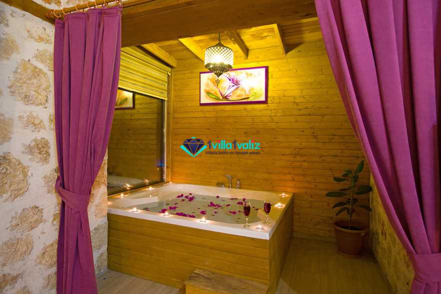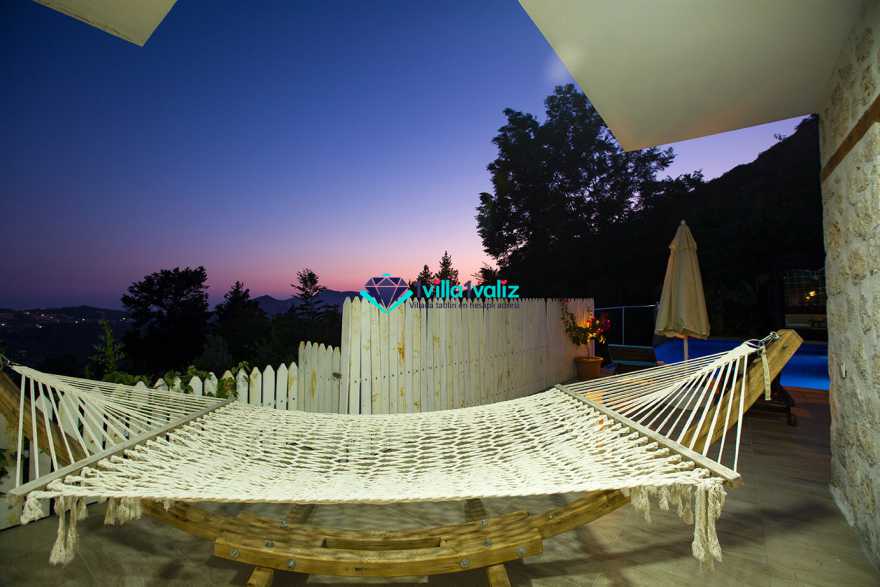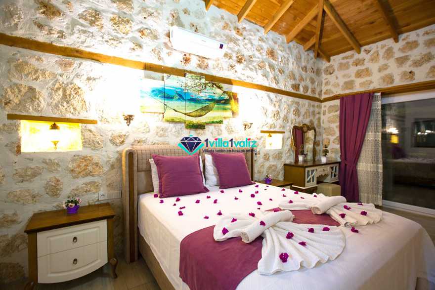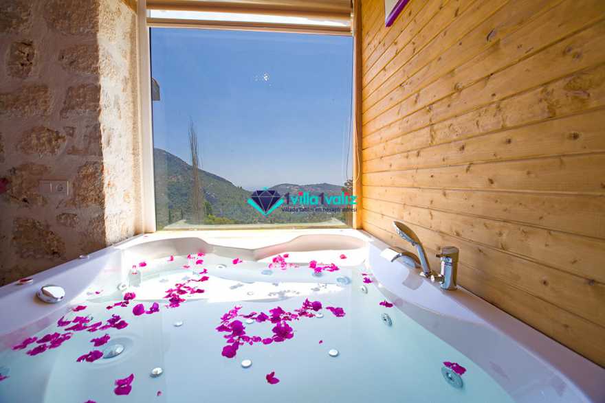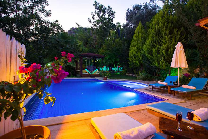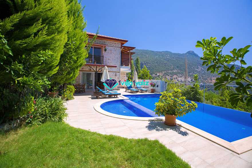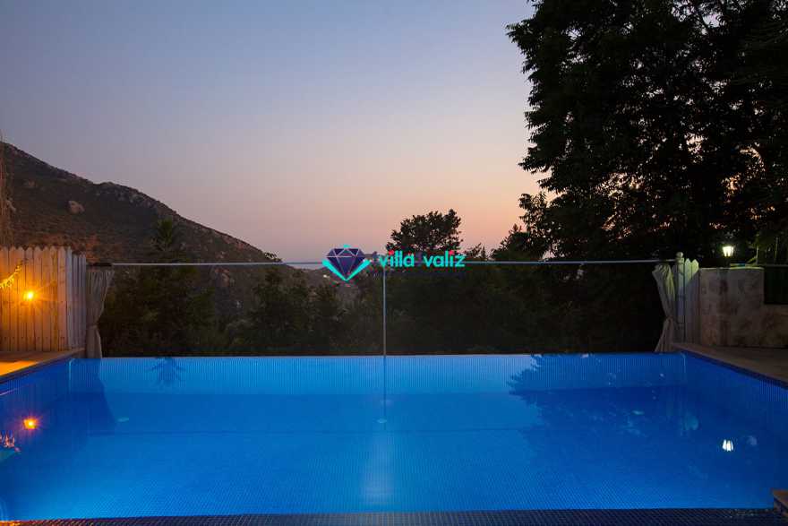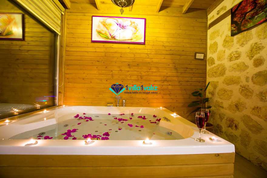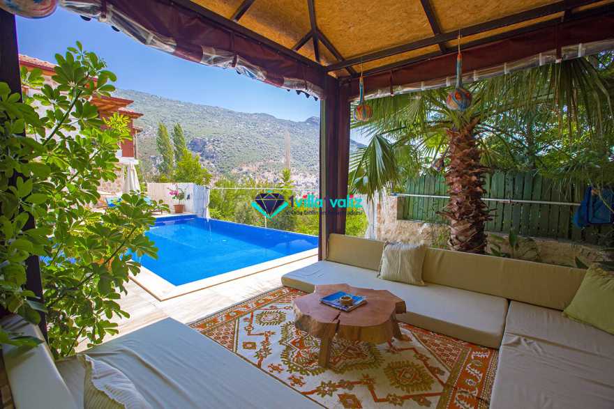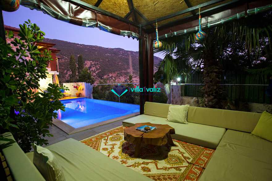 Villa Muar ; Kalkan İslamlar Köyü Mevkisi ' nde doğa içerisinde yer almakta olan taş yapımı bir tatil evidir. Yazlığımız , 2 suit yatak odası ve bir salondan oluşmakta olup , toplamda 4 kişiye kadar konaklama imkanı sağlanmaktadır. Villamızın suit ebeveyn yatak odasında etrafı ahşap ile dizayn edilerek hoş bir görünüme sahip olan büyük bir jakuzi yer almaktadır. Her iki suit odaların kendine ait özel banyosu ve tuvaleti bulunmaktadır. Yazlığımız ; Modern Amerikan Mutfaklı şık bir salona hakim olup ; salon çok modern ve kaliteli eşyalar ile dekore edilmiştir. Yemyeşil bir ortamda yer alan bu taş yapılı tatil mekanımız siz değerli muhafazakar ailelerimizin ve balayı çiftlerimizin konforu ön planda tutularak bütün ayrıntılar düşünülmüştür. Siz değerli misafirlerimizin havuz başında gönül rahatlığı ile zaman geçirmesi için havuz çevresi korunaklı hale getirilmiştir. Yabancı gözlerden uzakta , sadece sevdikleriniz ile keyifli vakit geçirebileceğiniz bir tatil yeri olan Villa Muar , sizlere kaliteli hizmet sunmak için beklemektedir. Kiralık evimizin bahçe dekorasyonunda da iç mekanda olduğu gibi bütün ayrıntılara yer verilerek dizayn edilmiştir. Mis kokulu çiçeklerle süslenen bahçemizde oturma alanı ve hamak bulunmaktadır. Yazlığımızın yakın mesafesinde market bulunması misafirlerimiz için iyi bir avantajdır.