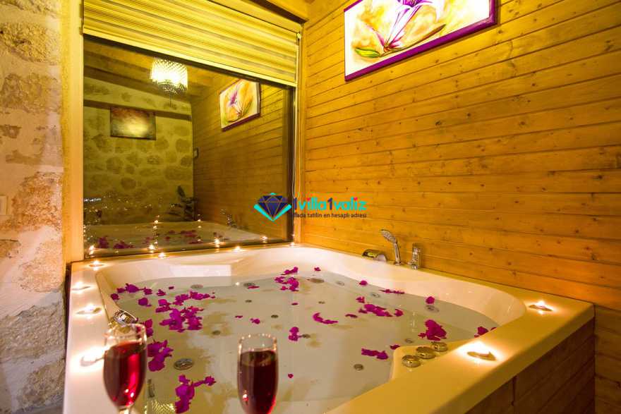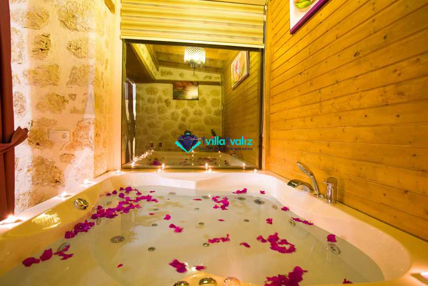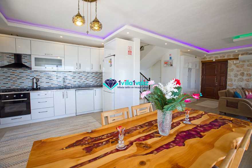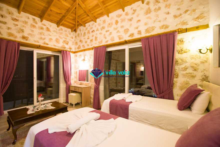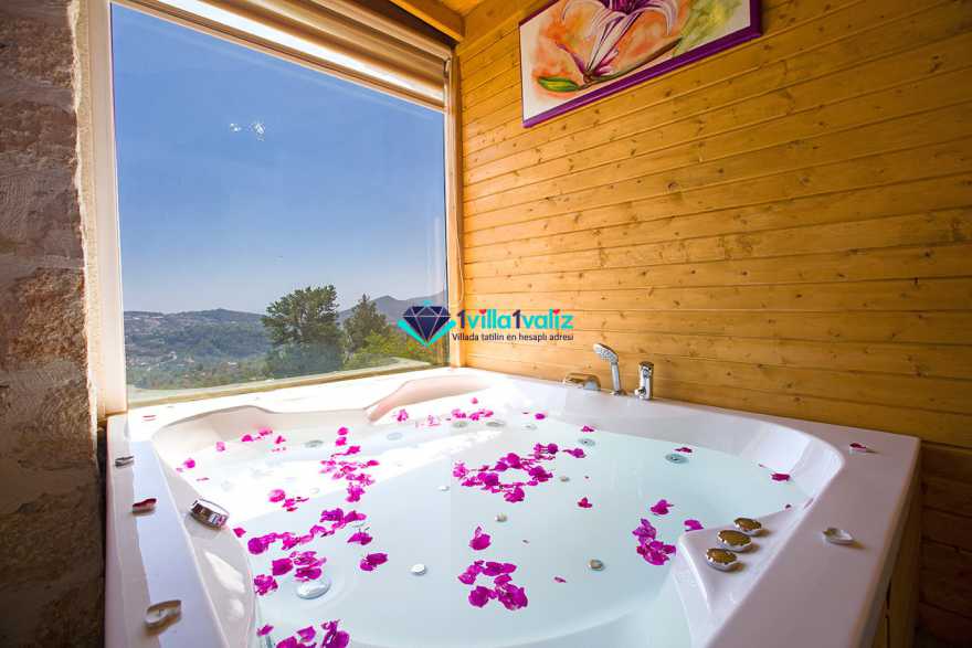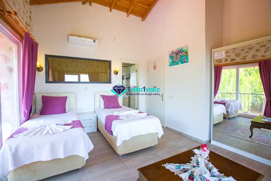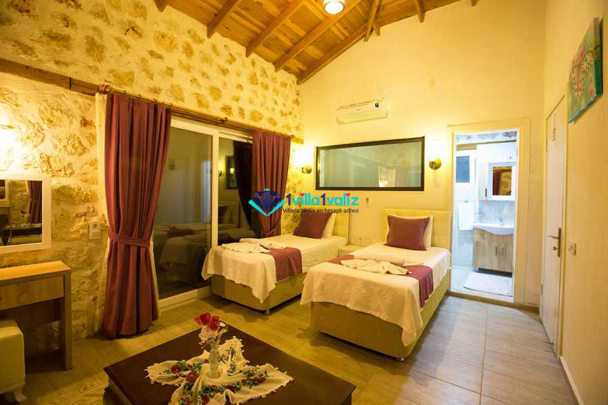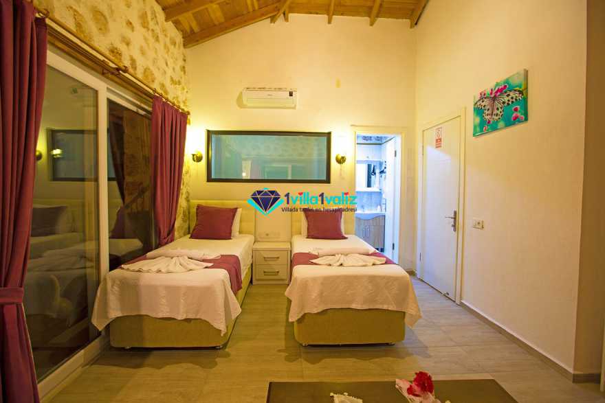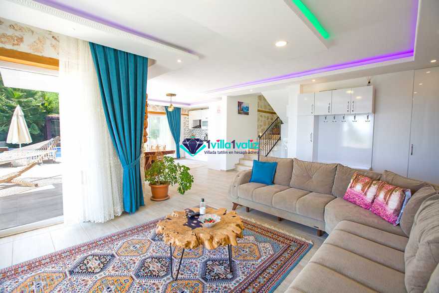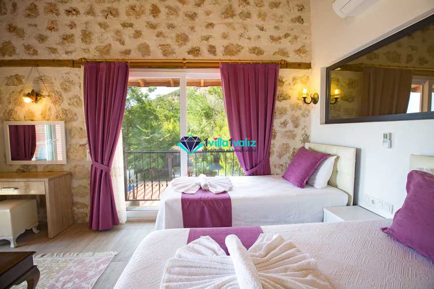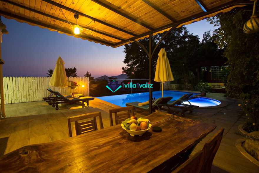 Villa Muar ; Kalkan İslamlar Köyü Mevkisi ' nde doğa içerisinde yer almakta olan taş yapımı bir tatil evidir. Yazlığımız , 2 suit yatak odası ve bir salondan oluşmakta olup , toplamda 4 kişiye kadar konaklama imkanı sağlanmaktadır. Villamızın suit ebeveyn yatak odasında etrafı ahşap ile dizayn edilerek hoş bir görünüme sahip olan büyük bir jakuzi yer almaktadır. Her iki suit odaların kendine ait özel banyosu ve tuvaleti bulunmaktadır. Yazlığımız ; Modern Amerikan Mutfaklı şık bir salona hakim olup ; salon çok modern ve kaliteli eşyalar ile dekore edilmiştir. Yemyeşil bir ortamda yer alan bu taş yapılı tatil mekanımız siz değerli muhafazakar ailelerimizin ve balayı çiftlerimizin konforu ön planda tutularak bütün ayrıntılar düşünülmüştür. Siz değerli misafirlerimizin havuz başında gönül rahatlığı ile zaman geçirmesi için havuz çevresi korunaklı hale getirilmiştir. Yabancı gözlerden uzakta , sadece sevdikleriniz ile keyifli vakit geçirebileceğiniz bir tatil yeri olan Villa Muar , sizlere kaliteli hizmet sunmak için beklemektedir. Kiralık evimizin bahçe dekorasyonunda da iç mekanda olduğu gibi bütün ayrıntılara yer verilerek dizayn edilmiştir. Mis kokulu çiçeklerle süslenen bahçemizde oturma alanı ve hamak bulunmaktadır. Yazlığımızın yakın mesafesinde market bulunması misafirlerimiz için iyi bir avantajdır.