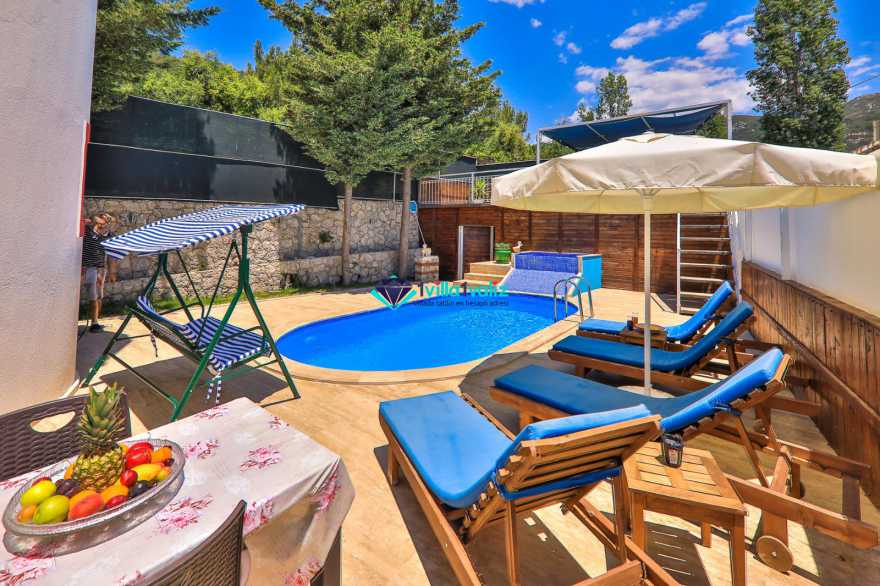 Villa Müge,gözde tatil cenneti Kalkanın islamlar mevkiinde yer almaktadır.3 yatak odalı 6 kişilik konaklama kapasitesine sahiptir.Korunaklı havuzu ve bahçesi ile muhafazakar aileler ve balayı çiftleri için en ince ayrıntısına kadar düşünülmüştür.Şehrin kalabalığından ve gürültüsünden uzakta sakin huzur içinde bir tatiil geçirmek için en doğru adres Villa Müge olacaktır.Villamıza giden yolun son 1.5 KM stabilize yoldur.Çok alçak araç ile gelmemenizi tavsiye ederiz.