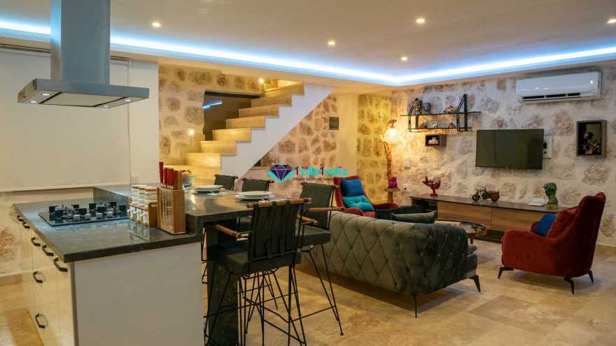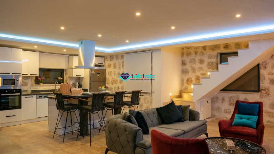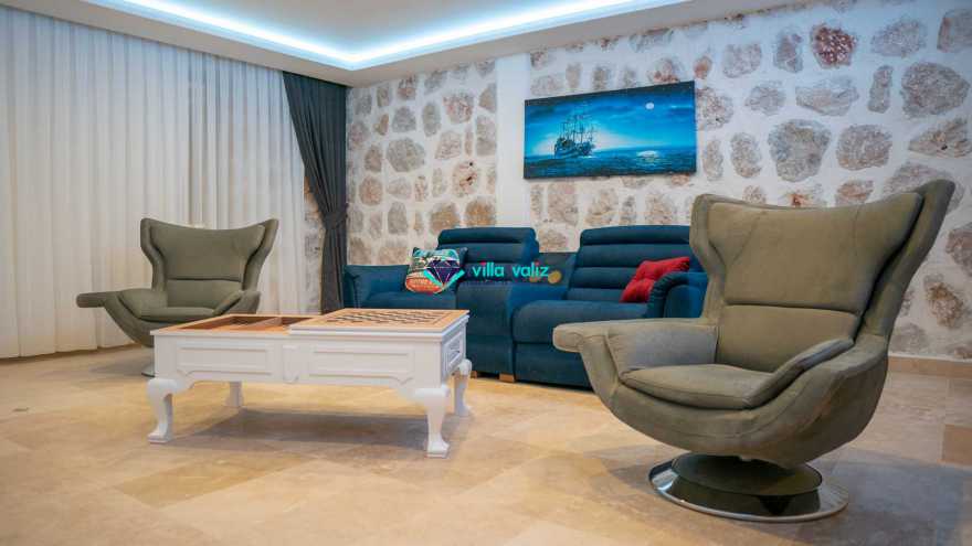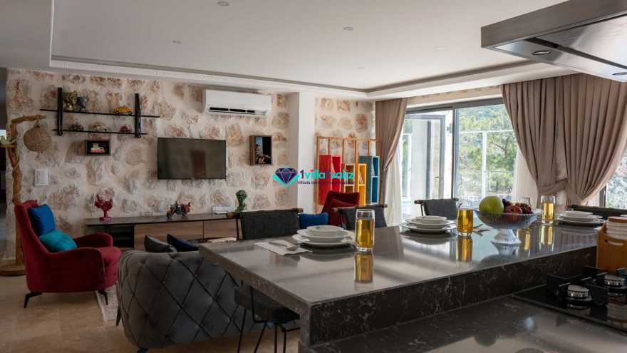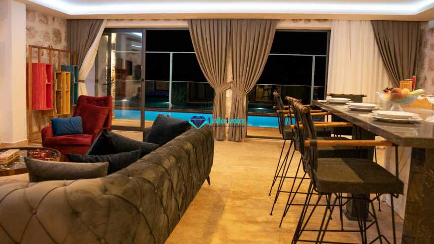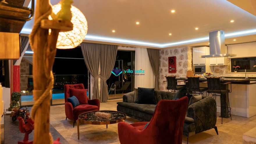 Salon Detayı: Klima, televizyon, internet, uydu alıcı, oturma grubu ve yemek masası bulunmaktadır. 1. katta sinema odası yer almaktadır. Salondan havuza açılan bir çıkışımız mevcuttur.
