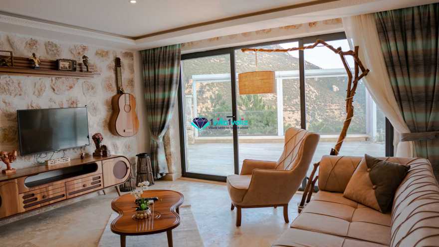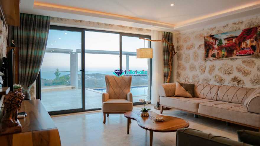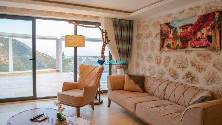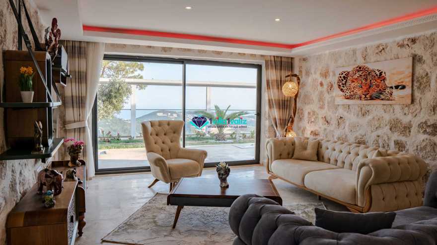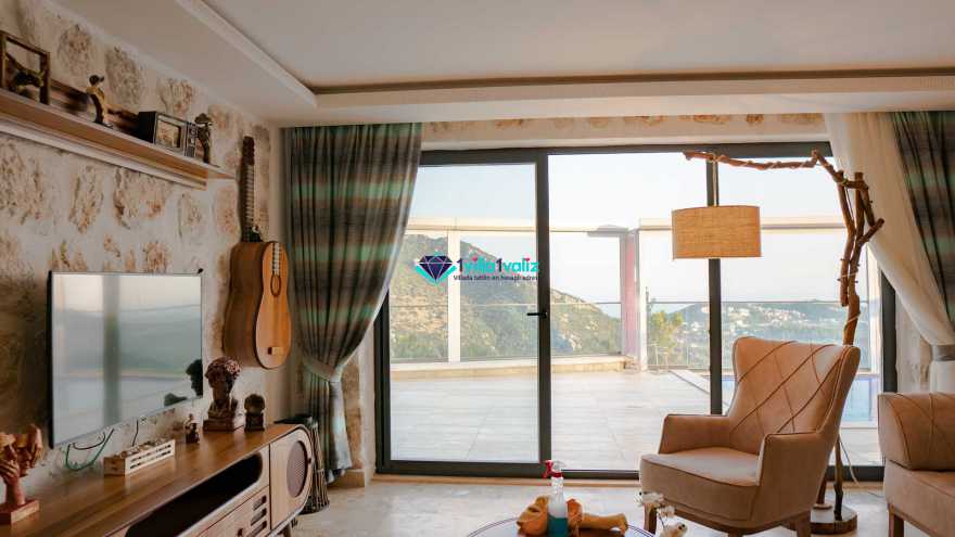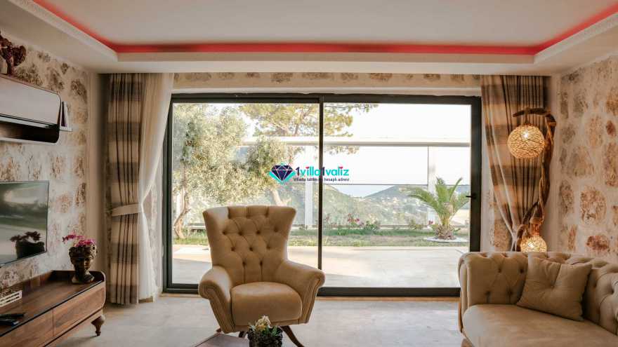 Salon Detayı: Salon geniş ve manzaralı bir konumdadır. Salon içerisinde oturma grubu, televizyon, uydu alıcı, internet, 4 kişilik yemek masası ve sandalyeler bulunmaktadır. Salondan havuza çıkış mümkündür.