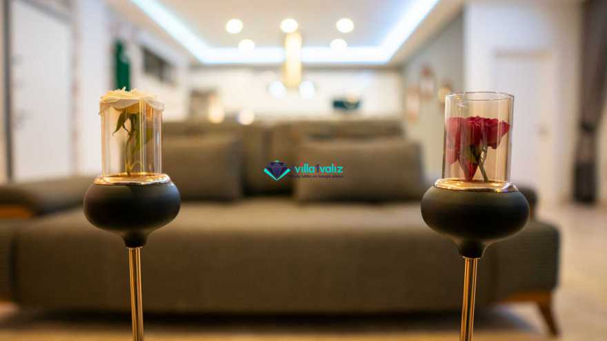 Mutfak Detayı: Bulaşık makinesi, buzdolabı, elektrikli su ısıtıcı kettle, çamaşır makinesi, fırın, 4’lü ocak, 4 kişilik yemek takımı, mikrodalga, kaşık, bıçak, çatal takımı, tencere, bardaklar ve tava takımı bulunmaktadır. Mutfaktan bahçeye ve havuza çıkışımız mevcuttur.