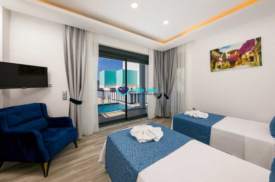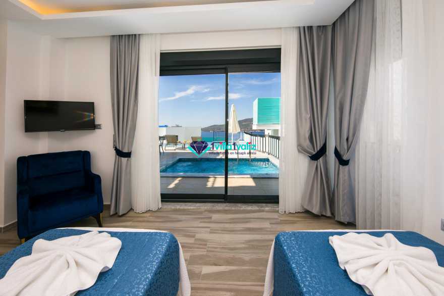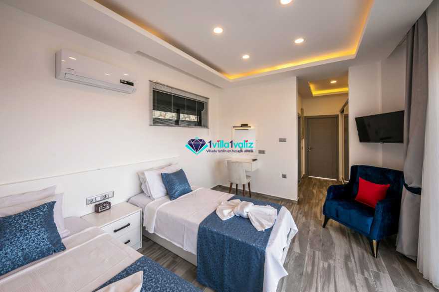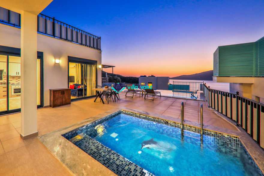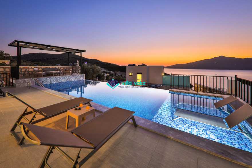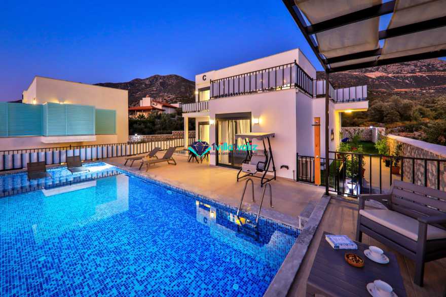 Kiralık yazlık villamız Kalkan Kışla mevkisin de konumlanmıştır. 2 yatak odalı 4 kişilik kapasiteye sahiptir. Villa Nazlı A deniz manzaralı olup denize yakınlık olarak yürüme mesafesinde konumlanmıştır. Ultra Lüks villamızın Özel yüzme havuzu ve havuz terası oldukça geniş ferah dizayn edilmiştir. Balayı villası olarak dizayn edilmiştir .Çift havuzu bulunup diğer havuzunda ısıtma sistemi bulunmaktadır . Kalabalık geniş aileler ile gelmek isterseniz villamızın Nazlı B Nazlı A olarak iki adet bulunmaktadır.