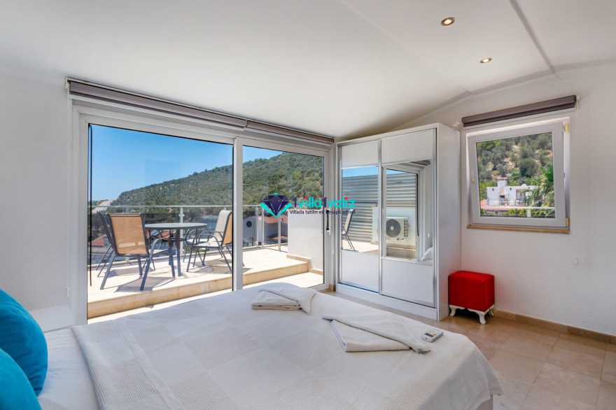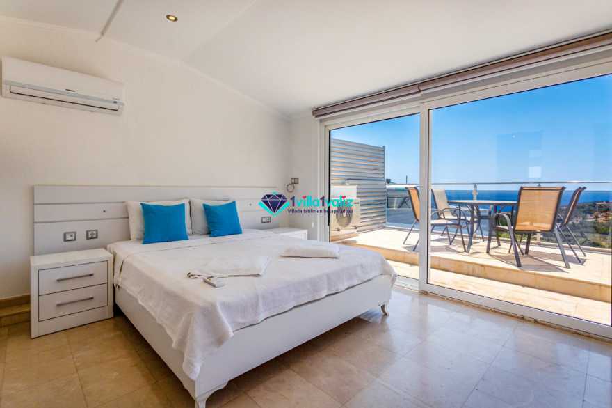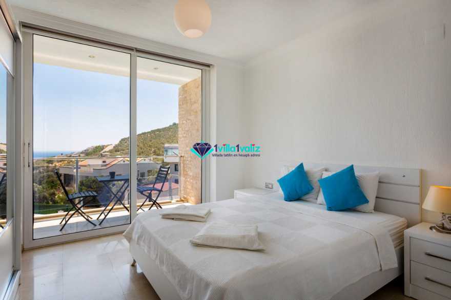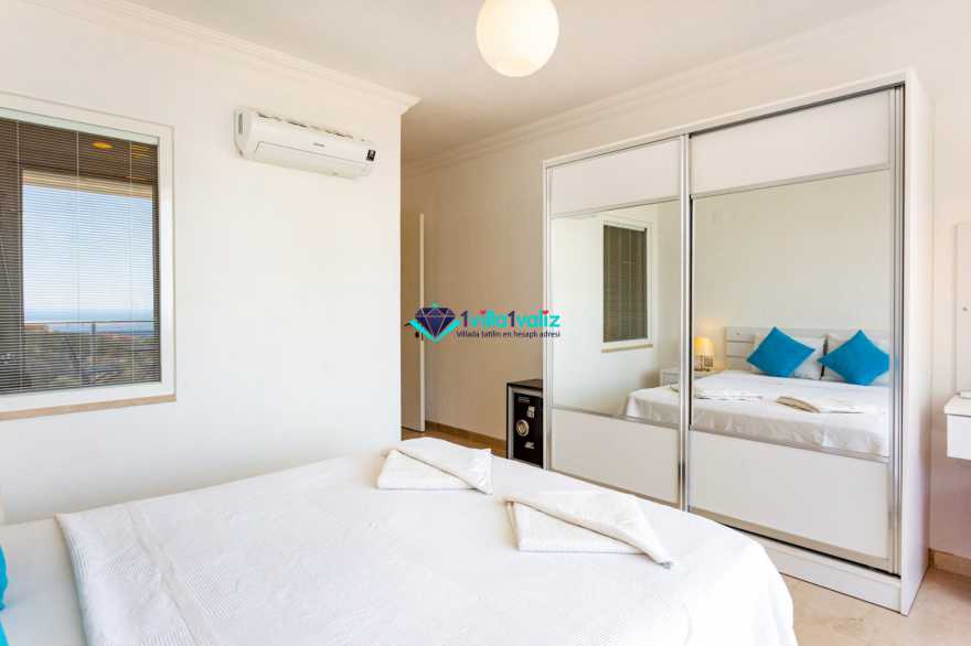 1. Yatak Odası: Çift kişilik yatak yatak odası, komidin, makyaj masası, klima, elbise dolabı, banyo ve balkonu vardır. deniz manzaralı yatak odası.