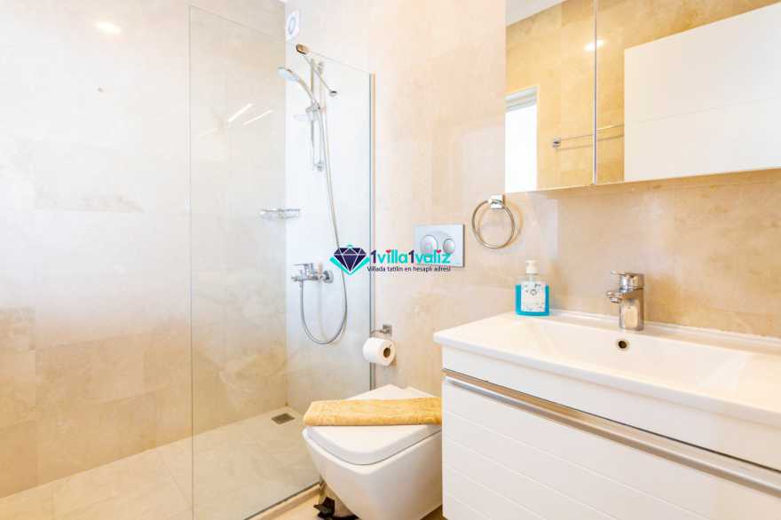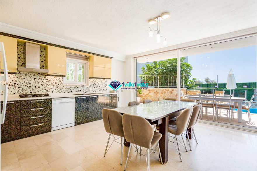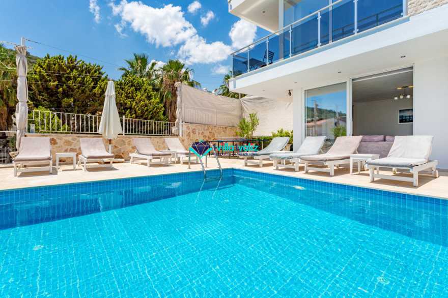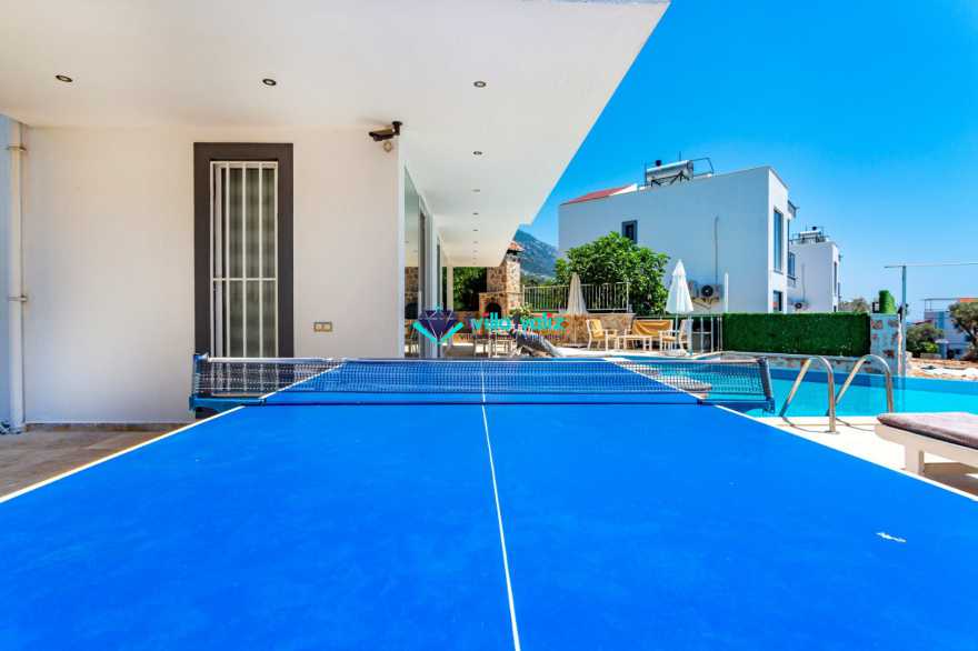 Özel yüzme havuzu ve havuz başında ise güneşlenme alanı ve özel bahçesi, 8 kişilik masa ve sandalye, 8 adet şezlong, barbekü, güneş şemsiyesi, oturma grubu, masa tenisi ve duş alanları bulunmaktadır.