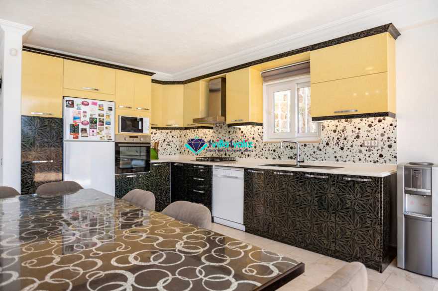 Modern Amerikan mutfakta buzdolabı,bulaşık makinası,fırın,4'lü ocak,mikrodalga fırın,kettle,ekmek kızartma makinası,yemek masası,yemek takımları,çatal ve bıçak takımları,tencere ve tava takımları,bardaklar bulunmaktadır.